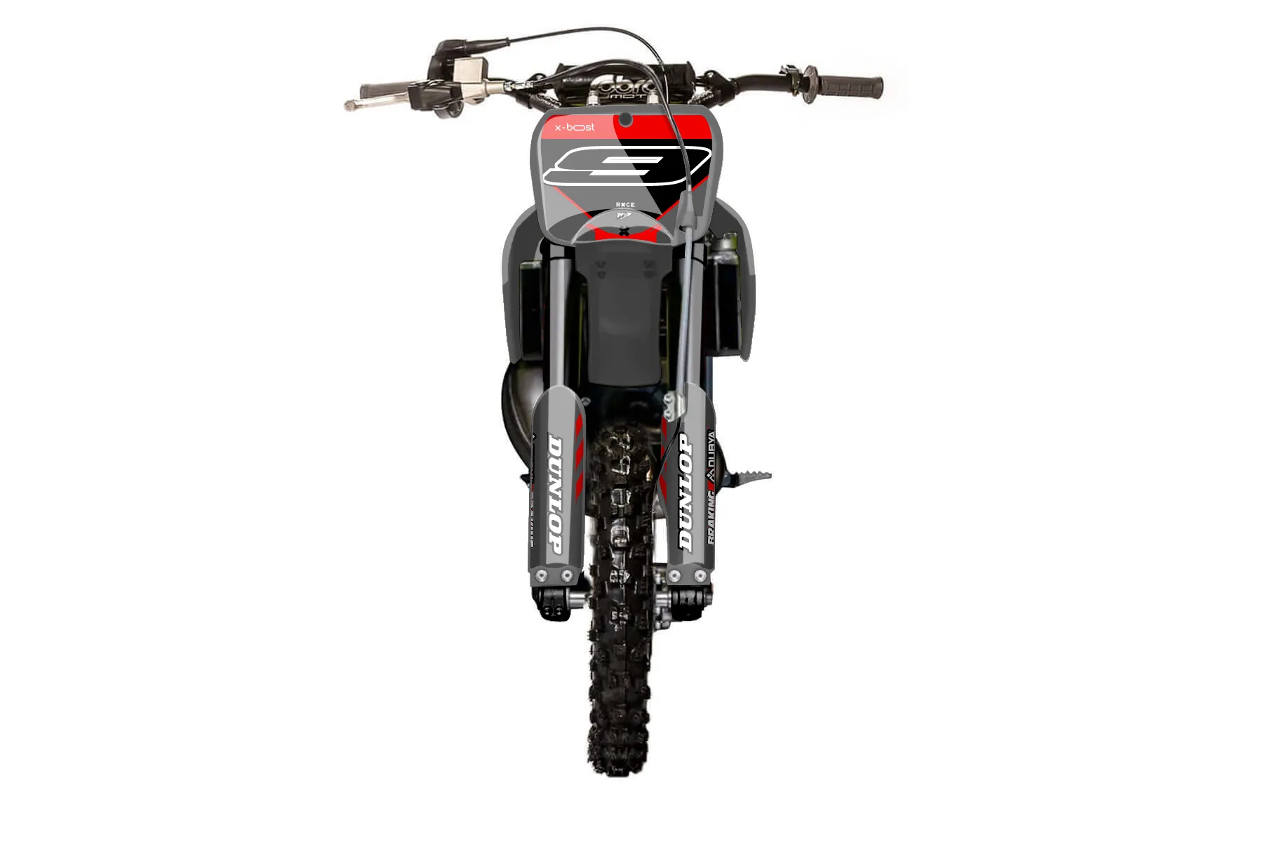 «Grip» — готовый комплект графики серии Maverick для Cobra MX Graphics Cobra CX50 Sr King 2010. В комплекте: графика на бак и боковые облицовки, крылья (переднее и заднее), передний щиток, номерные таблички, защита вилки. Материал: ПВХ-винил 80 мкр с холодной ламинацией 300 мкр, общая толщина 380 мкр; покрытие глянцевое или матовое на выбор. Устойчив к UV-излучению, воде, бензину и мойке высокого давления. Клей акриловый на сольвентной основе — постоянный, для гибких пластиков. На простых поверхностях монтируется без нагрева; для сложных изгибов рекомендуем фен. Этот пресет можно заказать как есть или взять за основу в конструкторе: поменять цвета, добавить стартовый номер и свой бренд. Производство — 3–5 рабочих дней, доставка по России СДЭКом или Почтой, по СНГ — курьерскими службами.