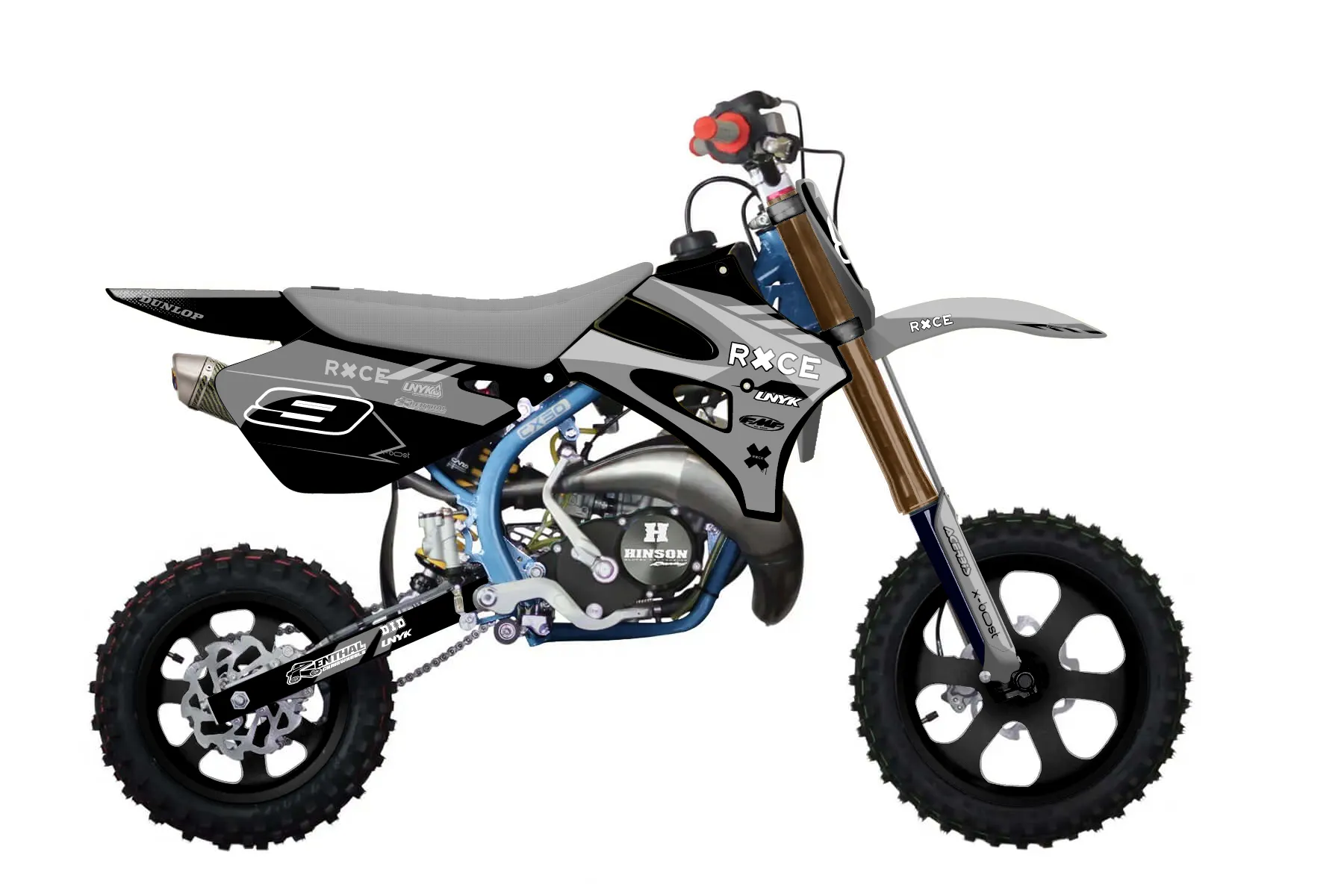 «Rise» — готовый комплект графики серии Maverick для Cobra MX Graphics Cobra CX50 Sr King 2010. В комплекте: графика на бак и боковые облицовки, крылья (переднее и заднее), передний щиток, номерные таблички, защита вилки. Материал: ПВХ-винил 80 мкр с холодной ламинацией 300 мкр, общая толщина 380 мкр; покрытие глянцевое или матовое на выбор. Устойчив к UV-излучению, воде, бензину и мойке высокого давления. Клей акриловый на сольвентной основе — постоянный, для гибких пластиков. На простых поверхностях монтируется без нагрева; для сложных изгибов рекомендуем фен. Этот пресет можно заказать как есть или взять за основу в конструкторе: поменять цвета, добавить стартовый номер и свой бренд. Производство — 3–5 рабочих дней, доставка по России СДЭКом или Почтой, по СНГ — курьерскими службами.