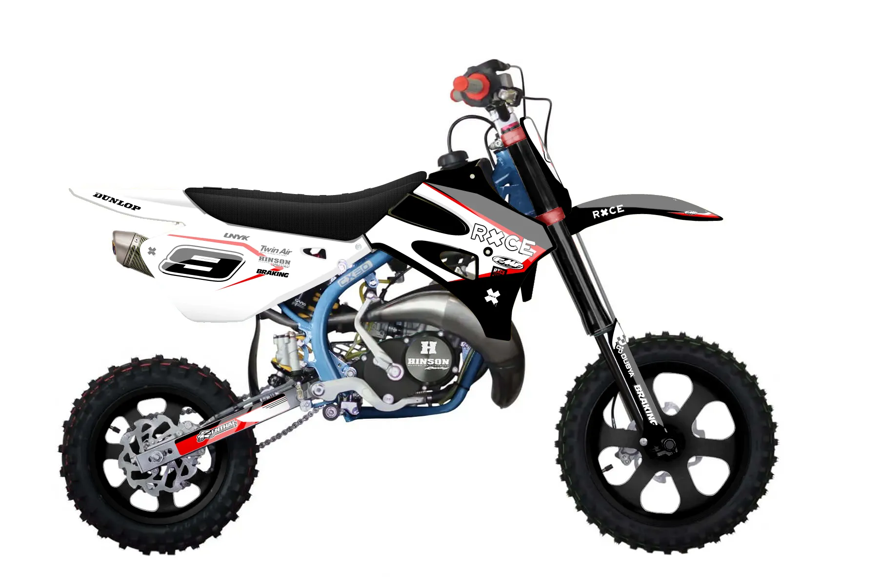 «Draft» — готовый комплект графики серии Staple для Cobra MX Graphics Cobra CX50 Sr King 2010. В комплекте: графика на бак и боковые облицовки, крылья (переднее и заднее), передний щиток, номерные таблички, защита вилки. Материал: ПВХ-винил 80 мкр с холодной ламинацией 300 мкр, общая толщина 380 мкр; покрытие глянцевое или матовое на выбор. Устойчив к UV-излучению, воде, бензину и мойке высокого давления. Клей акриловый на сольвентной основе — постоянный, для гибких пластиков. На простых поверхностях монтируется без нагрева; для сложных изгибов рекомендуем фен. Этот пресет можно заказать как есть или взять за основу в конструкторе: поменять цвета, добавить стартовый номер и свой бренд. Производство — 3–5 рабочих дней, доставка по России СДЭКом или Почтой, по СНГ — курьерскими службами.