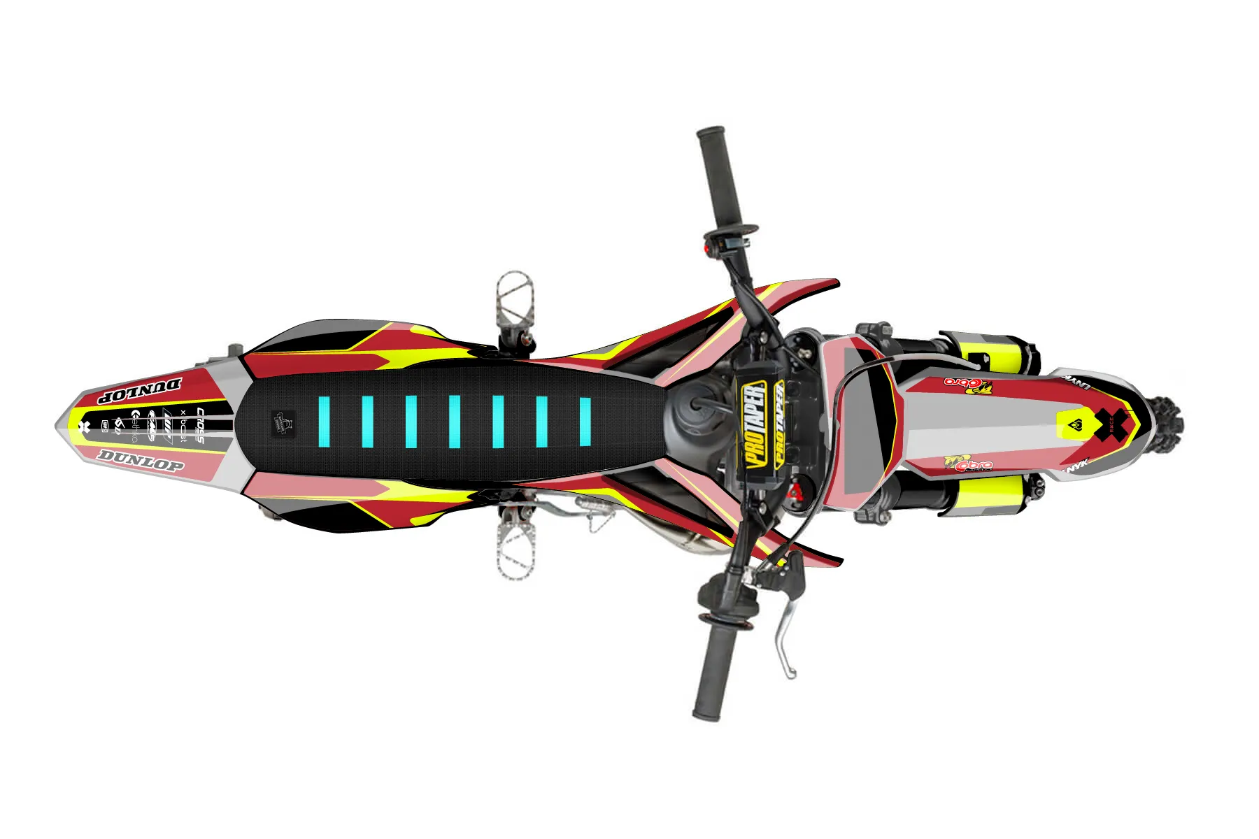 «CustomDesign» — готовый комплект графики серии Flow для Cobra MX Graphics Cobra CX50 P3 2014. В комплекте: графика на бак и боковые облицовки, крылья (переднее и заднее), передний щиток, номерные таблички, защита вилки. Материал: ПВХ-винил 80 мкр с холодной ламинацией 300 мкр, общая толщина 380 мкр; покрытие глянцевое или матовое на выбор. Устойчив к UV-излучению, воде, бензину и мойке высокого давления. Клей акриловый на сольвентной основе — постоянный, для гибких пластиков. На простых поверхностях монтируется без нагрева; для сложных изгибов рекомендуем фен. Этот пресет можно заказать как есть или взять за основу в конструкторе: поменять цвета, добавить стартовый номер и свой бренд. Производство — 3–5 рабочих дней, доставка по России СДЭКом или Почтой, по СНГ — курьерскими службами.