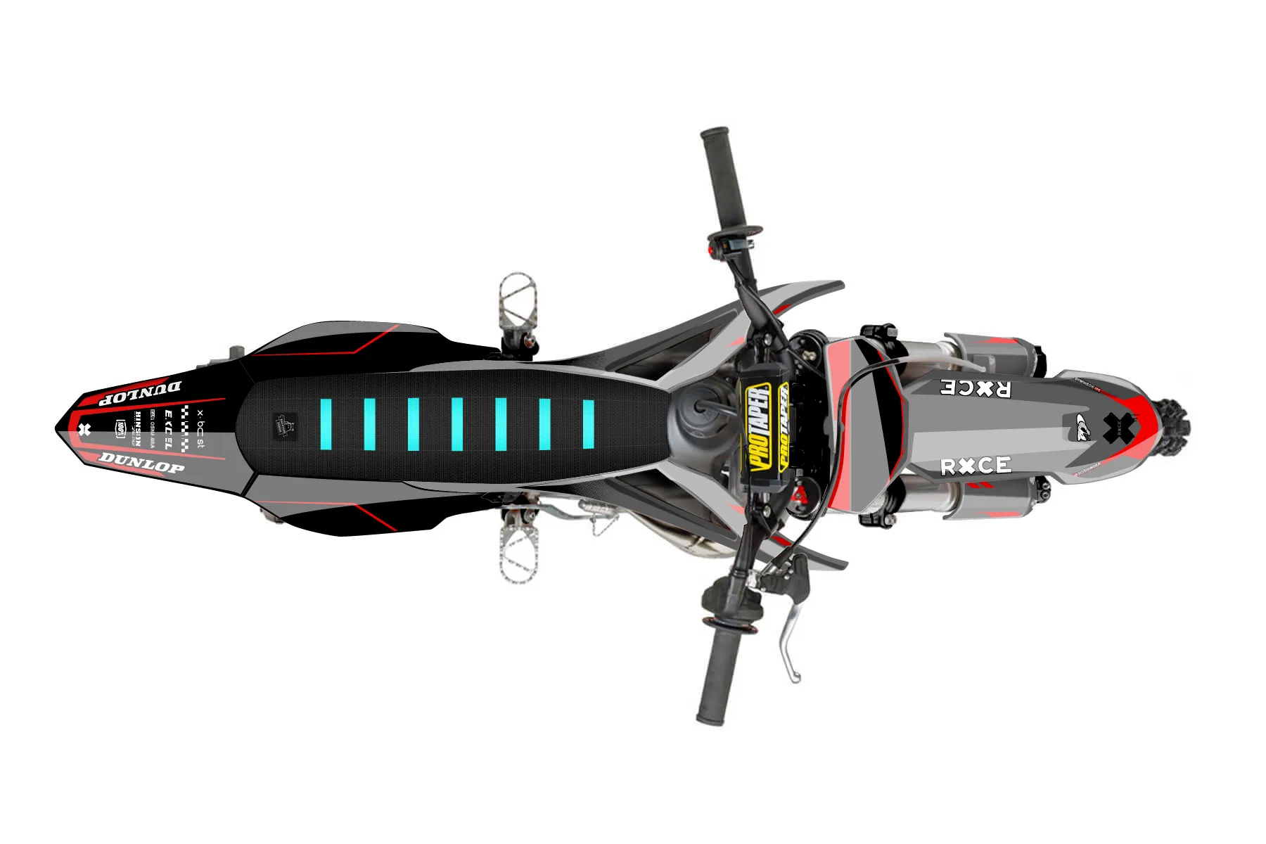 «Grip» — готовый комплект графики серии Maverick для Cobra MX Graphics Cobra CX50 P3 2014. В комплекте: графика на бак и боковые облицовки, крылья (переднее и заднее), передний щиток, номерные таблички, защита вилки. Материал: ПВХ-винил 80 мкр с холодной ламинацией 300 мкр, общая толщина 380 мкр; покрытие глянцевое или матовое на выбор. Устойчив к UV-излучению, воде, бензину и мойке высокого давления. Клей акриловый на сольвентной основе — постоянный, для гибких пластиков. На простых поверхностях монтируется без нагрева; для сложных изгибов рекомендуем фен. Этот пресет можно заказать как есть или взять за основу в конструкторе: поменять цвета, добавить стартовый номер и свой бренд. Производство — 3–5 рабочих дней, доставка по России СДЭКом или Почтой, по СНГ — курьерскими службами.
