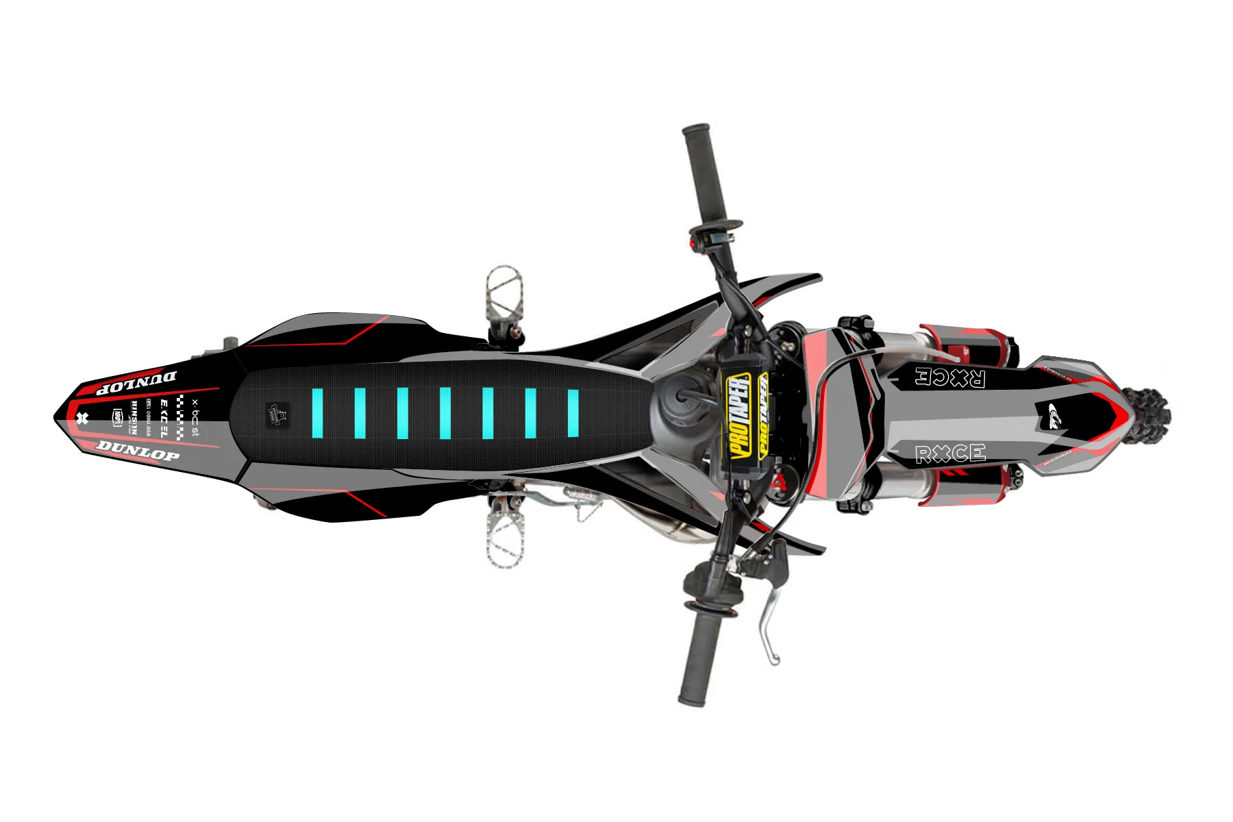 «Grip» — готовый комплект графики серии Maverick для Cobra MX Graphics Cobra CX50 P3 2022. В комплекте: графика на бак и боковые облицовки, крылья (переднее и заднее), передний щиток, номерные таблички, защита вилки. Материал: ПВХ-винил 80 мкр с холодной ламинацией 300 мкр, общая толщина 380 мкр; покрытие глянцевое или матовое на выбор. Устойчив к UV-излучению, воде, бензину и мойке высокого давления. Клей акриловый на сольвентной основе — постоянный, для гибких пластиков. На простых поверхностях монтируется без нагрева; для сложных изгибов рекомендуем фен. Этот пресет можно заказать как есть или взять за основу в конструкторе: поменять цвета, добавить стартовый номер и свой бренд. Производство — 3–5 рабочих дней, доставка по России СДЭКом или Почтой, по СНГ — курьерскими службами.