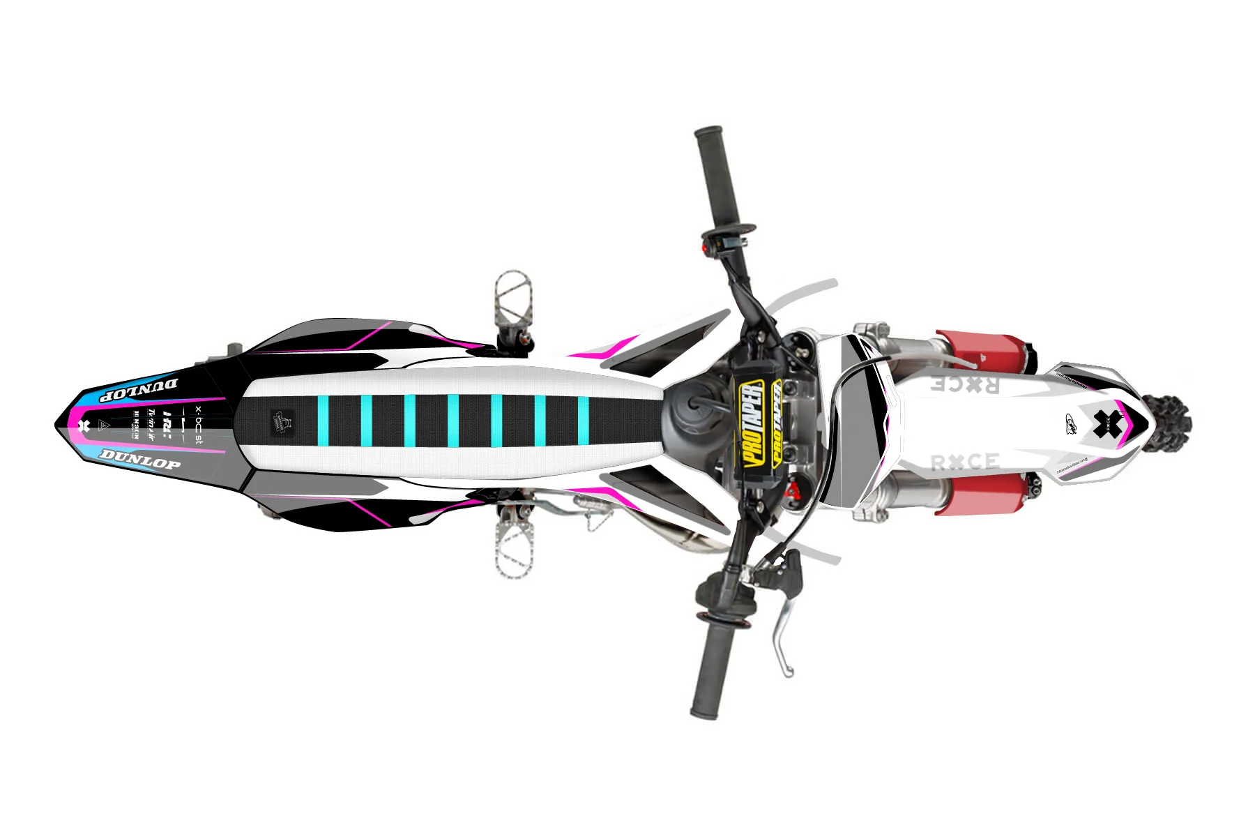 «Pattern» — готовый комплект графики серии Flow для Cobra MX Graphics Cobra CX50 P3 2023. В комплекте: графика на бак и боковые облицовки, крылья (переднее и заднее), передний щиток, номерные таблички, защита вилки. Материал: ПВХ-винил 80 мкр с холодной ламинацией 300 мкр, общая толщина 380 мкр; покрытие глянцевое или матовое на выбор. Устойчив к UV-излучению, воде, бензину и мойке высокого давления. Клей акриловый на сольвентной основе — постоянный, для гибких пластиков. На простых поверхностях монтируется без нагрева; для сложных изгибов рекомендуем фен. Этот пресет можно заказать как есть или взять за основу в конструкторе: поменять цвета, добавить стартовый номер и свой бренд. Производство — 3–5 рабочих дней, доставка по России СДЭКом или Почтой, по СНГ — курьерскими службами.