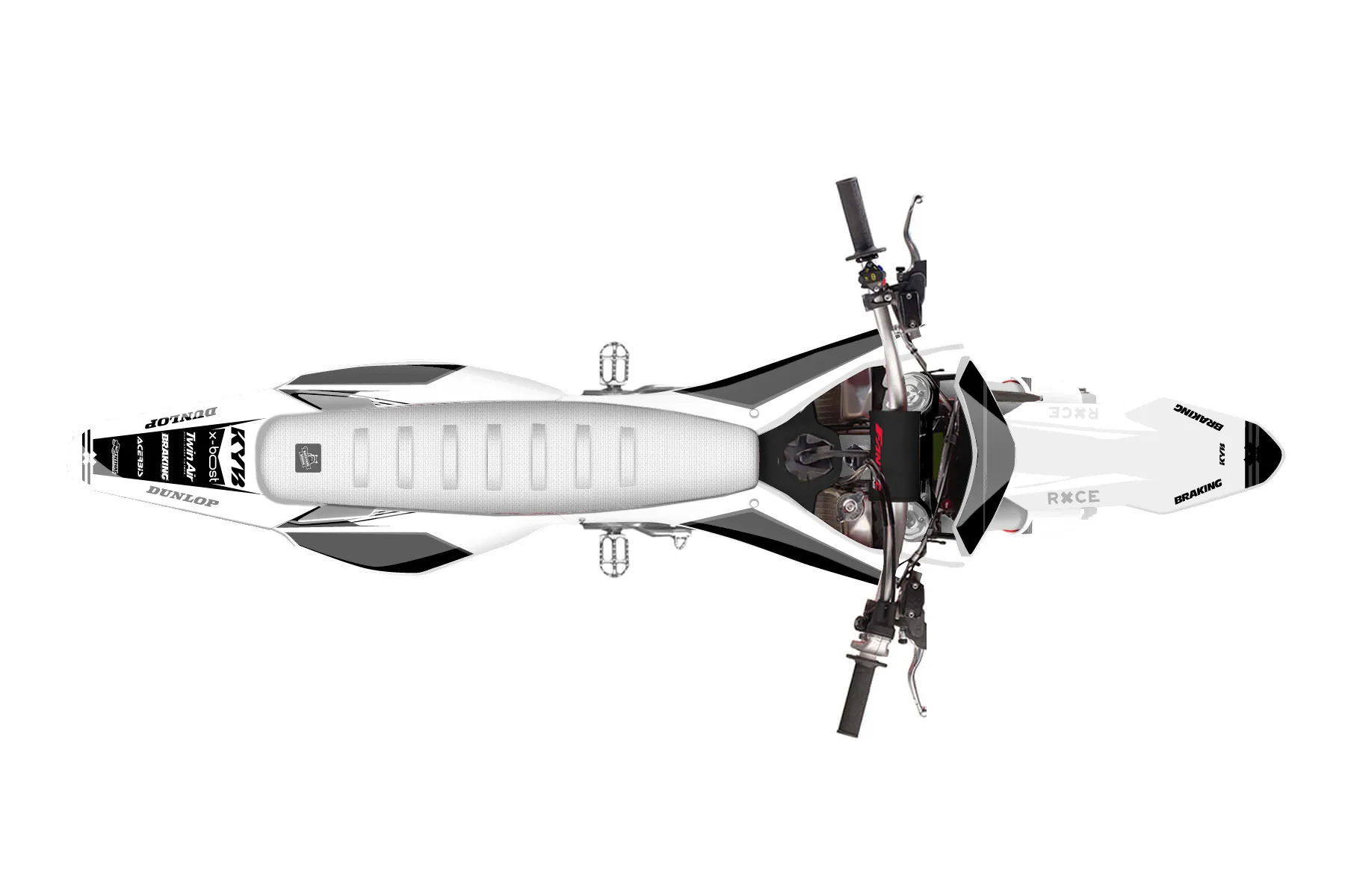 «Replica Pro» — готовый комплект графики серии Untucked для Fantic MX Graphic Kit Fantic XX 125 2024. В комплекте: графика на бак и боковые облицовки, крылья (переднее и заднее), передний щиток, номерные таблички, защита вилки. Материал: ПВХ-винил 80 мкр с холодной ламинацией 300 мкр, общая толщина 380 мкр; покрытие глянцевое или матовое на выбор. Устойчив к UV-излучению, воде, бензину и мойке высокого давления. Клей акриловый на сольвентной основе — постоянный, для гибких пластиков. На простых поверхностях монтируется без нагрева; для сложных изгибов рекомендуем фен. Этот пресет можно заказать как есть или взять за основу в конструкторе: поменять цвета, добавить стартовый номер и свой бренд. Производство — 3–5 рабочих дней, доставка по России СДЭКом или Почтой, по СНГ — курьерскими службами.