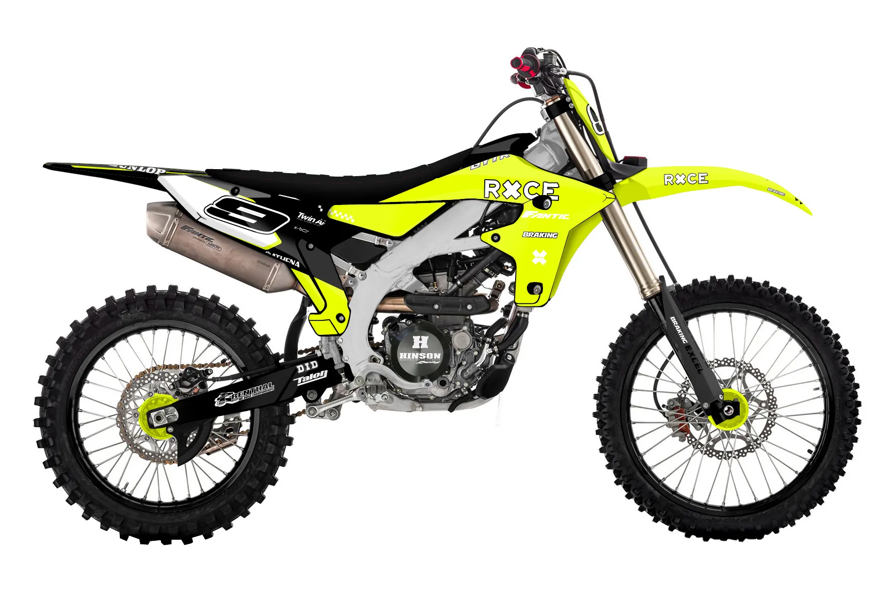 «Prime Neon» — готовый комплект графики серии Flow для Fantic MX Graphic Kit Fantic XXF 450 2021. В комплекте: графика на бак и боковые облицовки, крылья (переднее и заднее), передний щиток, номерные таблички, защита вилки. Материал: ПВХ-винил 80 мкр с холодной ламинацией 300 мкр, общая толщина 380 мкр; покрытие глянцевое или матовое на выбор. Устойчив к UV-излучению, воде, бензину и мойке высокого давления. Клей акриловый на сольвентной основе — постоянный, для гибких пластиков. На простых поверхностях монтируется без нагрева; для сложных изгибов рекомендуем фен. Этот пресет можно заказать как есть или взять за основу в конструкторе: поменять цвета, добавить стартовый номер и свой бренд. Производство — 3–5 рабочих дней, доставка по России СДЭКом или Почтой, по СНГ — курьерскими службами.