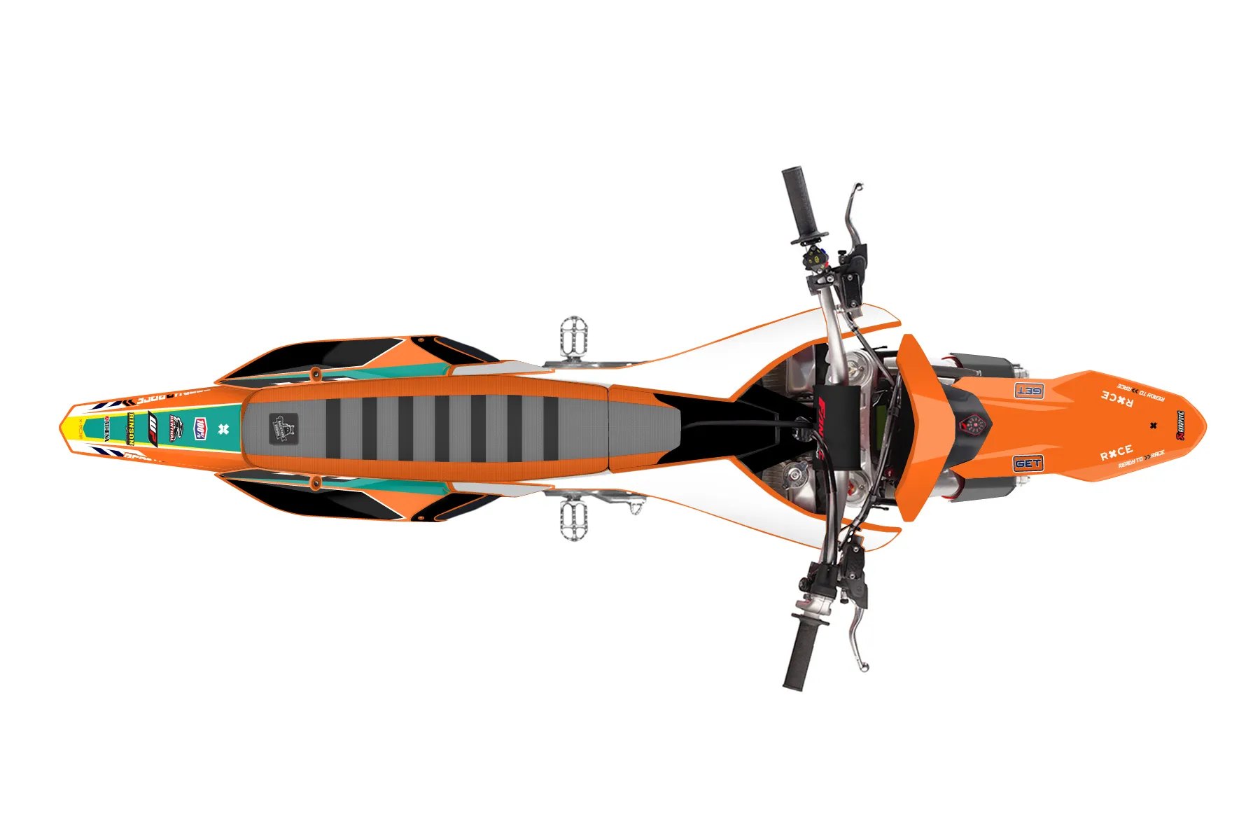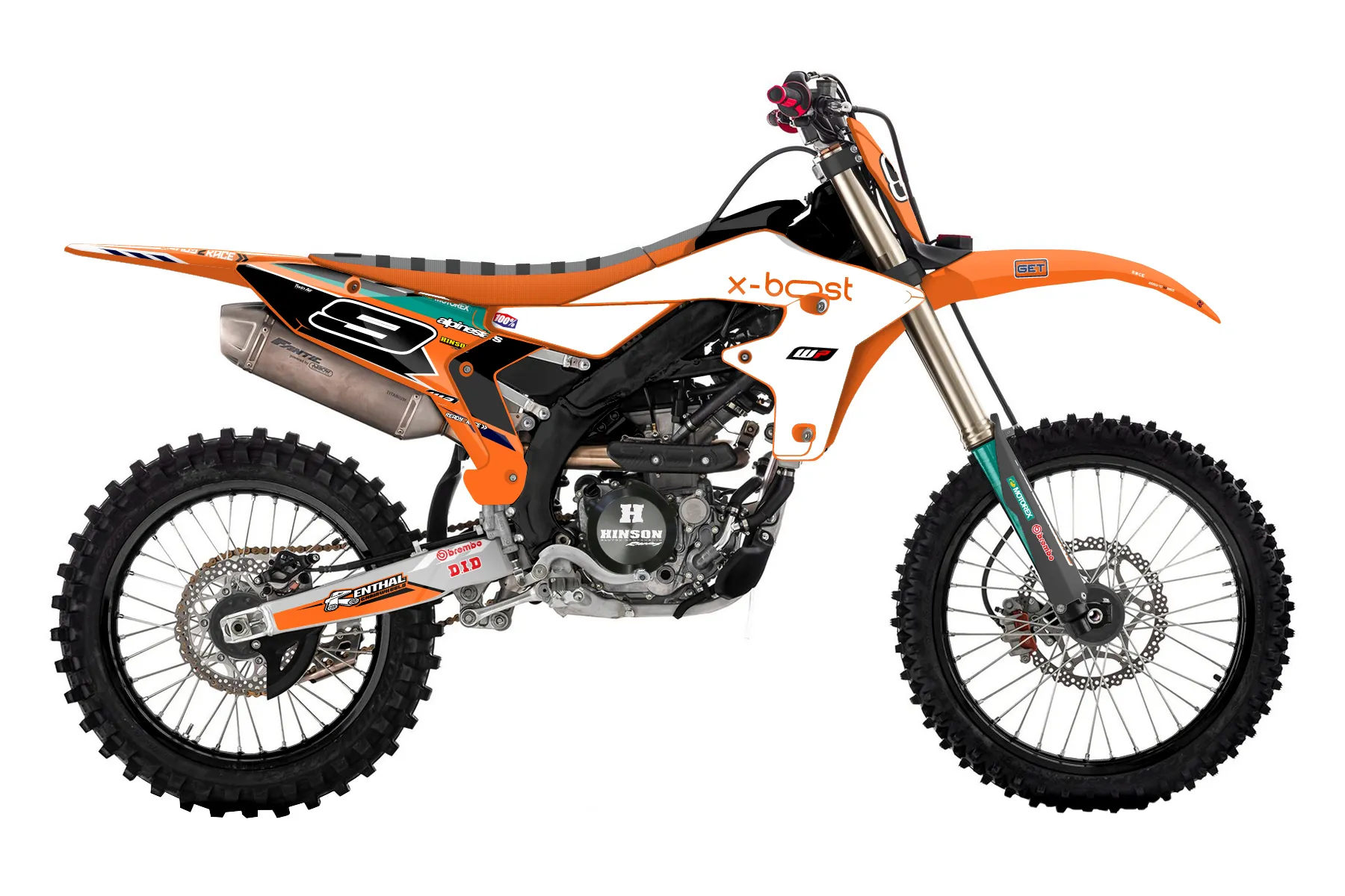 «CustomDesign1» — готовый комплект графики серии Maverick для Fantic MX Graphic Kit Fantic XXF 450 2021. В комплекте: графика на бак и боковые облицовки, крылья (переднее и заднее), передний щиток, номерные таблички, защита вилки. Материал: ПВХ-винил 80 мкр с холодной ламинацией 300 мкр, общая толщина 380 мкр; покрытие глянцевое или матовое на выбор. Устойчив к UV-излучению, воде, бензину и мойке высокого давления. Клей акриловый на сольвентной основе — постоянный, для гибких пластиков. На простых поверхностях монтируется без нагрева; для сложных изгибов рекомендуем фен. Этот пресет можно заказать как есть или взять за основу в конструкторе: поменять цвета, добавить стартовый номер и свой бренд. Производство — 3–5 рабочих дней, доставка по России СДЭКом или Почтой, по СНГ — курьерскими службами.