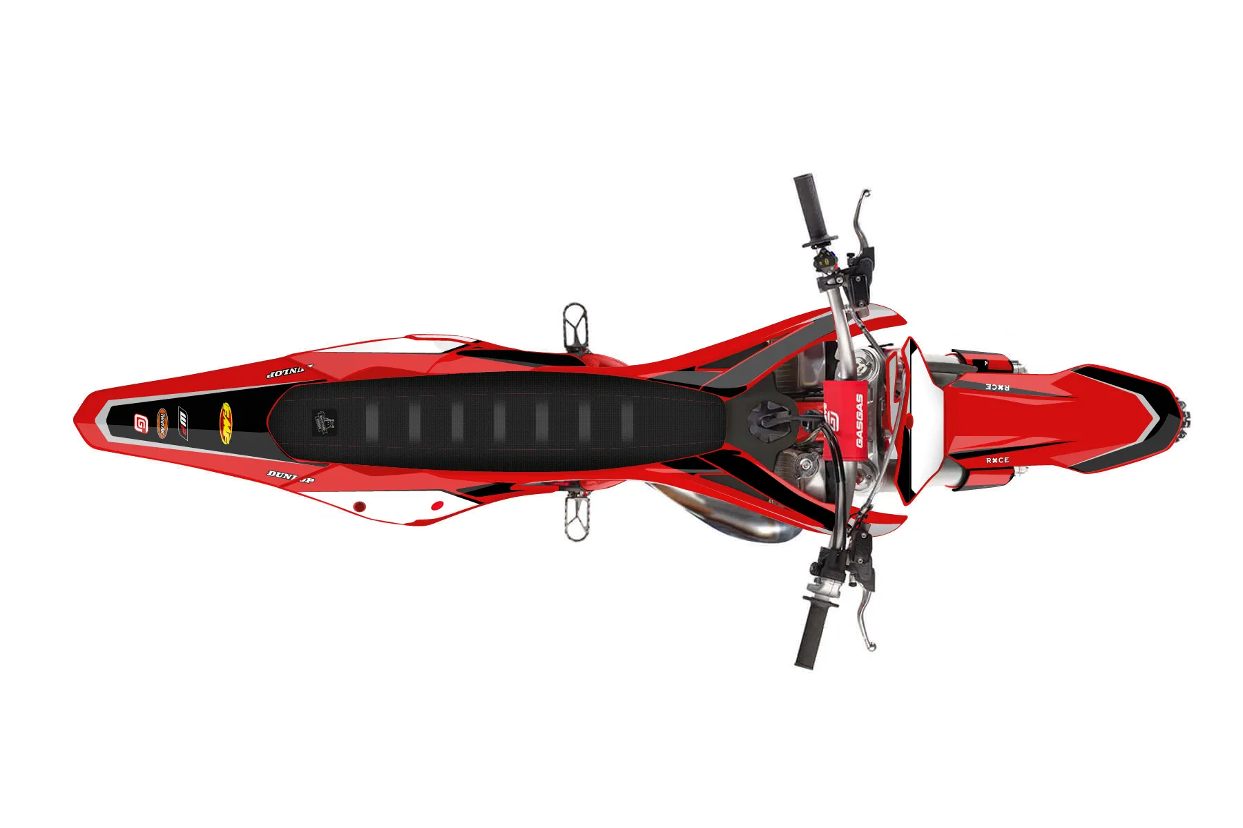 «mc250» — готовый комплект графики серии Flow для GasGas MX Graphic Kit GasGas MC 250 2021. В комплекте: графика на бак и боковые облицовки, крылья (переднее и заднее), передний щиток, номерные таблички, защита вилки. Материал: ПВХ-винил 80 мкр с холодной ламинацией 300 мкр, общая толщина 380 мкр; покрытие глянцевое или матовое на выбор. Устойчив к UV-излучению, воде, бензину и мойке высокого давления. Клей акриловый на сольвентной основе — постоянный, для гибких пластиков. На простых поверхностях монтируется без нагрева; для сложных изгибов рекомендуем фен. Этот пресет можно заказать как есть или взять за основу в конструкторе: поменять цвета, добавить стартовый номер и свой бренд. Производство — 3–5 рабочих дней, доставка по России СДЭКом или Почтой, по СНГ — курьерскими службами.