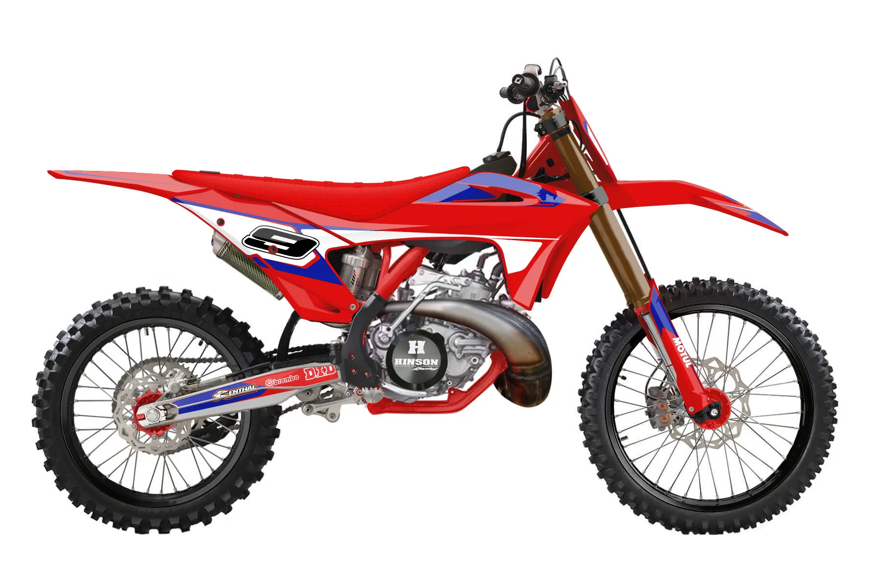 «Trademark» — готовый комплект графики серии Flow для GasGas MX Graphic Kit GasGas MC 250 2021. В комплекте: графика на бак и боковые облицовки, крылья (переднее и заднее), передний щиток, номерные таблички, защита вилки. Материал: ПВХ-винил 80 мкр с холодной ламинацией 300 мкр, общая толщина 380 мкр; покрытие глянцевое или матовое на выбор. Устойчив к UV-излучению, воде, бензину и мойке высокого давления. Клей акриловый на сольвентной основе — постоянный, для гибких пластиков. На простых поверхностях монтируется без нагрева; для сложных изгибов рекомендуем фен. Этот пресет можно заказать как есть или взять за основу в конструкторе: поменять цвета, добавить стартовый номер и свой бренд. Производство — 3–5 рабочих дней, доставка по России СДЭКом или Почтой, по СНГ — курьерскими службами.