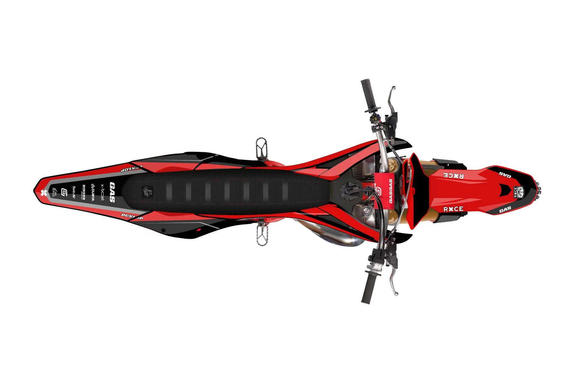 «Uphill» — готовый комплект графики серии Flow для GasGas MX Graphic Kit GasGas MC 250 2021. В комплекте: графика на бак и боковые облицовки, крылья (переднее и заднее), передний щиток, номерные таблички, защита вилки. Материал: ПВХ-винил 80 мкр с холодной ламинацией 300 мкр, общая толщина 380 мкр; покрытие глянцевое или матовое на выбор. Устойчив к UV-излучению, воде, бензину и мойке высокого давления. Клей акриловый на сольвентной основе — постоянный, для гибких пластиков. На простых поверхностях монтируется без нагрева; для сложных изгибов рекомендуем фен. Этот пресет можно заказать как есть или взять за основу в конструкторе: поменять цвета, добавить стартовый номер и свой бренд. Производство — 3–5 рабочих дней, доставка по России СДЭКом или Почтой, по СНГ — курьерскими службами.