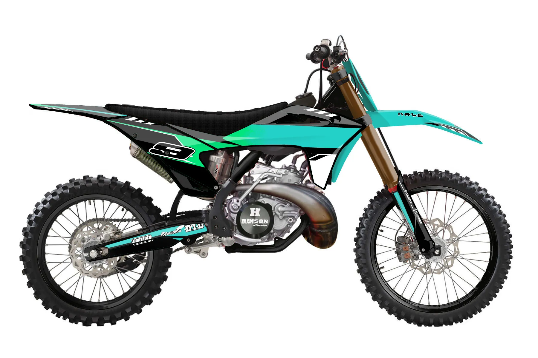 «Drizzle» — готовый комплект графики серии Maverick для GasGas MX Graphic Kit GasGas MC 250 2021. В комплекте: графика на бак и боковые облицовки, крылья (переднее и заднее), передний щиток, номерные таблички, защита вилки. Материал: ПВХ-винил 80 мкр с холодной ламинацией 300 мкр, общая толщина 380 мкр; покрытие глянцевое или матовое на выбор. Устойчив к UV-излучению, воде, бензину и мойке высокого давления. Клей акриловый на сольвентной основе — постоянный, для гибких пластиков. На простых поверхностях монтируется без нагрева; для сложных изгибов рекомендуем фен. Этот пресет можно заказать как есть или взять за основу в конструкторе: поменять цвета, добавить стартовый номер и свой бренд. Производство — 3–5 рабочих дней, доставка по России СДЭКом или Почтой, по СНГ — курьерскими службами.
