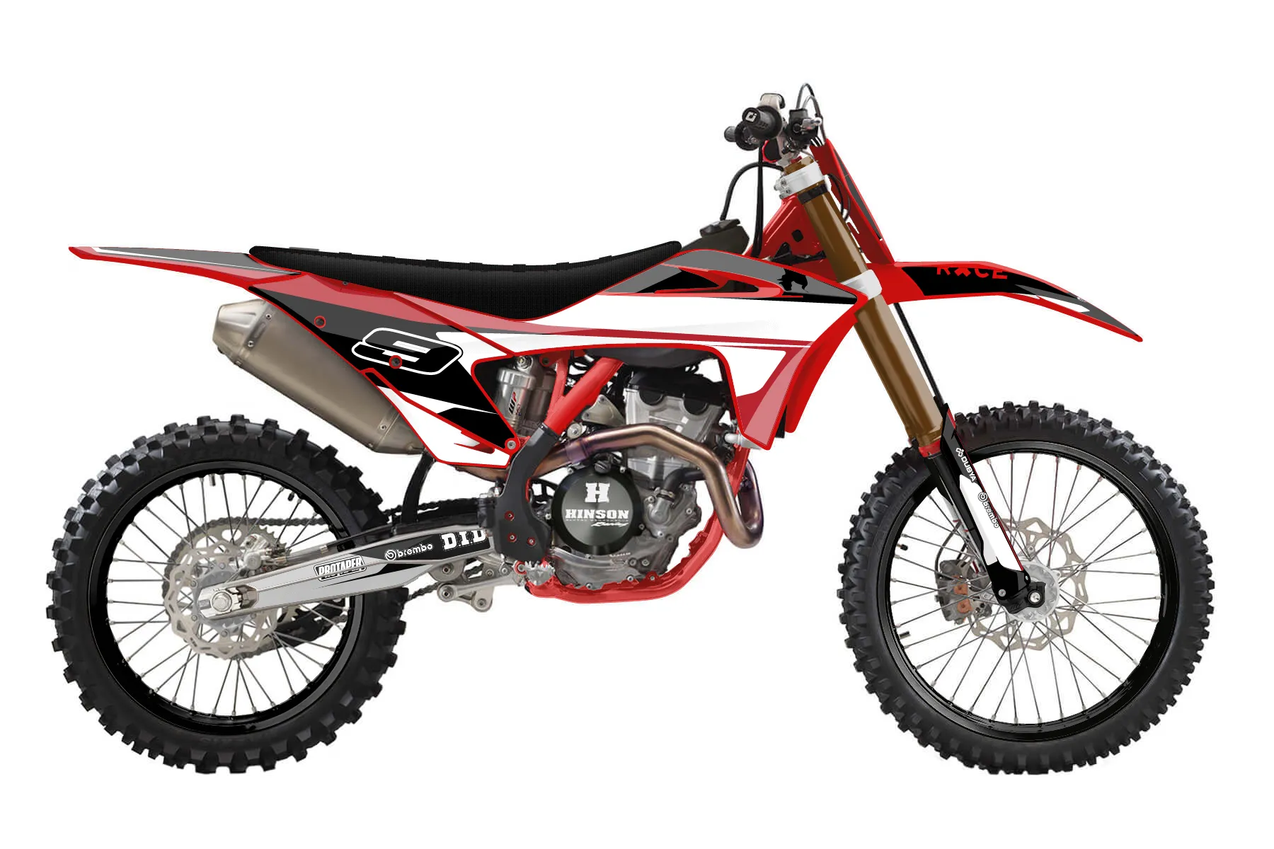«CustomDesign#1» — готовый комплект графики серии Flow для GasGas MX Graphic Kit GasGas MC 350F 2021. В комплекте: графика на бак и боковые облицовки, крылья (переднее и заднее), передний щиток, номерные таблички, защита вилки. Материал: ПВХ-винил 80 мкр с холодной ламинацией 300 мкр, общая толщина 380 мкр; покрытие глянцевое или матовое на выбор. Устойчив к UV-излучению, воде, бензину и мойке высокого давления. Клей акриловый на сольвентной основе — постоянный, для гибких пластиков. На простых поверхностях монтируется без нагрева; для сложных изгибов рекомендуем фен. Этот пресет можно заказать как есть или взять за основу в конструкторе: поменять цвета, добавить стартовый номер и свой бренд. Производство — 3–5 рабочих дней, доставка по России СДЭКом или Почтой, по СНГ — курьерскими службами.