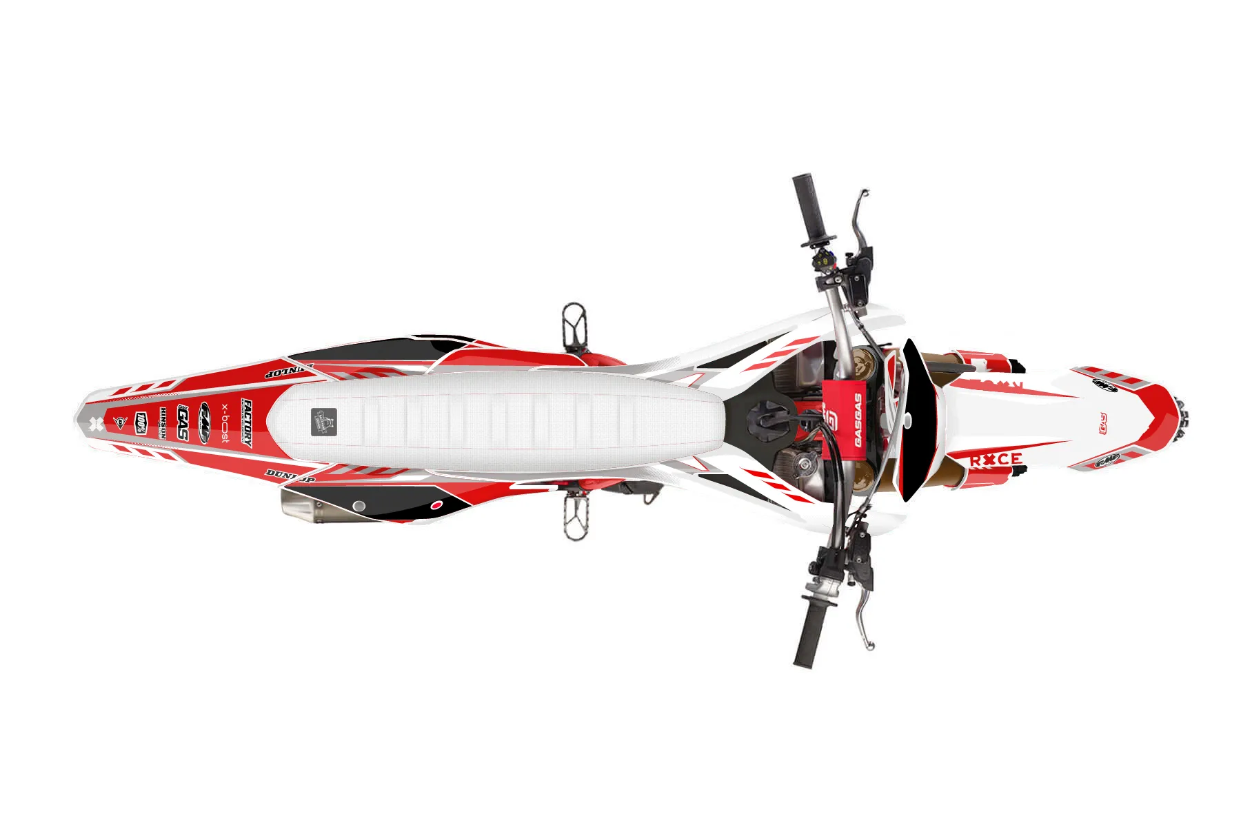 «GasGas» — готовый комплект графики серии Maverick для GasGas MX Graphic Kit GasGas MC 350F 2021. В комплекте: графика на бак и боковые облицовки, крылья (переднее и заднее), передний щиток, номерные таблички, защита вилки. Материал: ПВХ-винил 80 мкр с холодной ламинацией 300 мкр, общая толщина 380 мкр; покрытие глянцевое или матовое на выбор. Устойчив к UV-излучению, воде, бензину и мойке высокого давления. Клей акриловый на сольвентной основе — постоянный, для гибких пластиков. На простых поверхностях монтируется без нагрева; для сложных изгибов рекомендуем фен. Этот пресет можно заказать как есть или взять за основу в конструкторе: поменять цвета, добавить стартовый номер и свой бренд. Производство — 3–5 рабочих дней, доставка по России СДЭКом или Почтой, по СНГ — курьерскими службами.