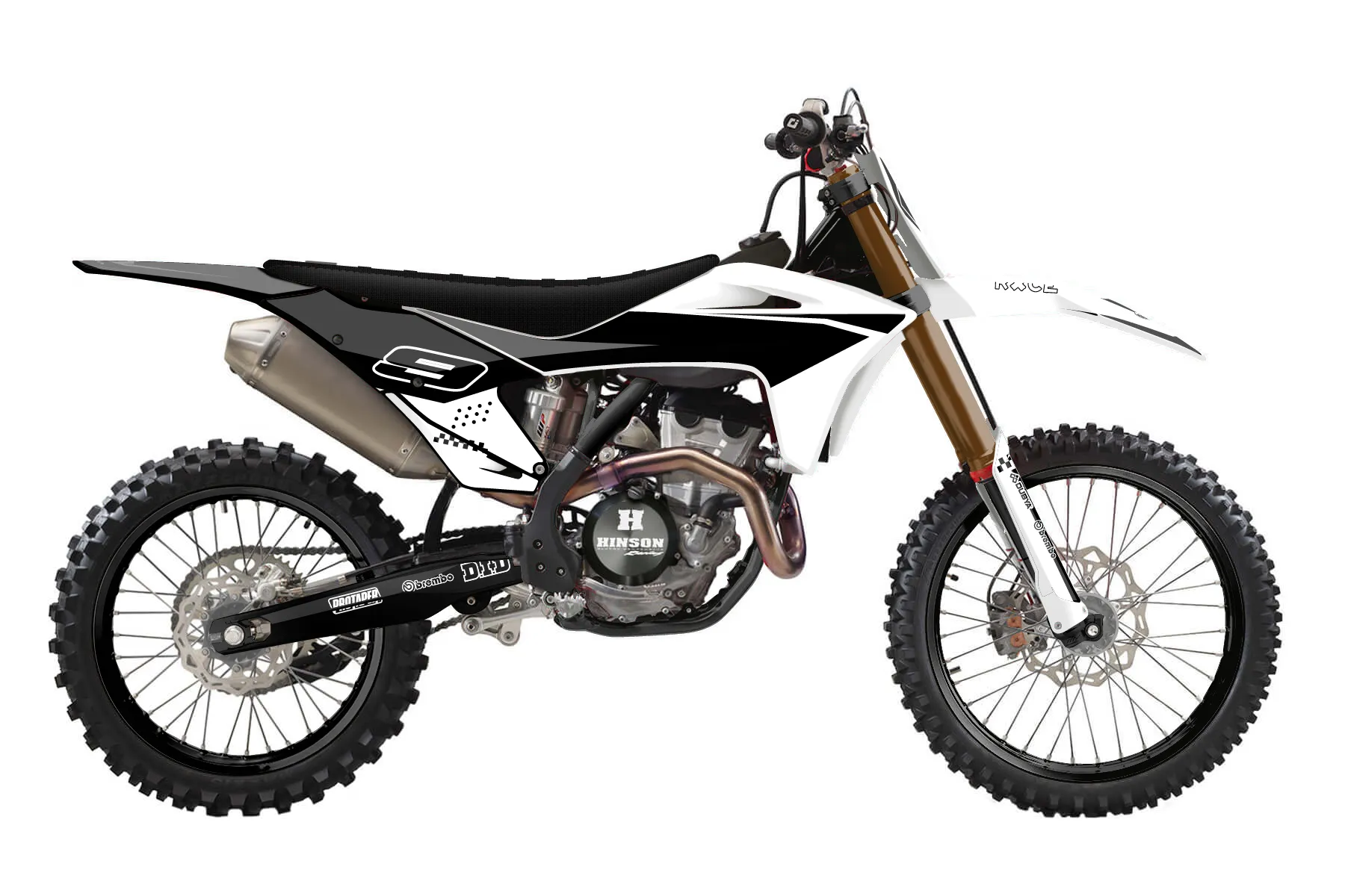«Answer» — готовый комплект графики серии Staple для GasGas MX Graphic Kit GasGas MC 350F 2021. В комплекте: графика на бак и боковые облицовки, крылья (переднее и заднее), передний щиток, номерные таблички, защита вилки. Материал: ПВХ-винил 80 мкр с холодной ламинацией 300 мкр, общая толщина 380 мкр; покрытие глянцевое или матовое на выбор. Устойчив к UV-излучению, воде, бензину и мойке высокого давления. Клей акриловый на сольвентной основе — постоянный, для гибких пластиков. На простых поверхностях монтируется без нагрева; для сложных изгибов рекомендуем фен. Этот пресет можно заказать как есть или взять за основу в конструкторе: поменять цвета, добавить стартовый номер и свой бренд. Производство — 3–5 рабочих дней, доставка по России СДЭКом или Почтой, по СНГ — курьерскими службами.
