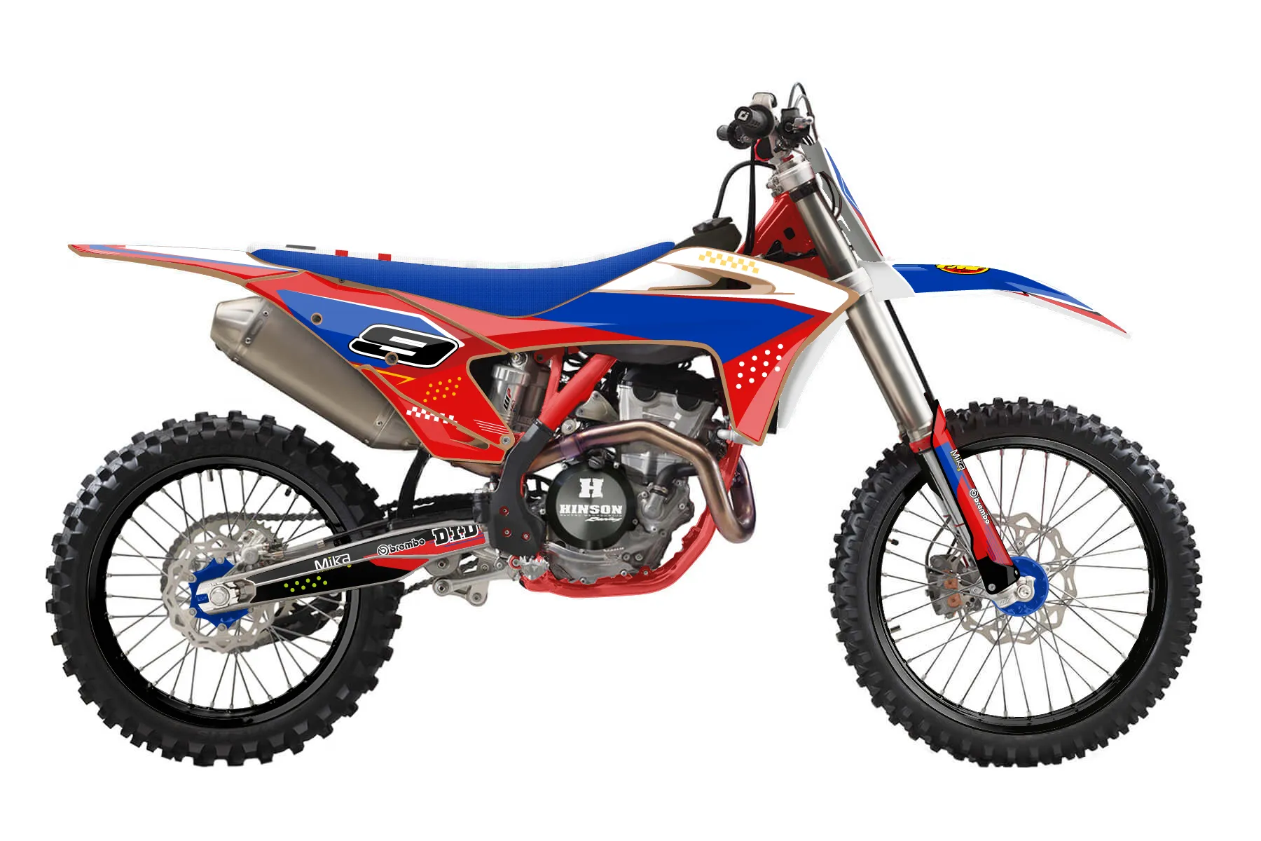 «pats» — готовый комплект графики серии Staple для GasGas MX Graphic Kit GasGas MC 350F 2021. В комплекте: графика на бак и боковые облицовки, крылья (переднее и заднее), передний щиток, номерные таблички, защита вилки. Материал: ПВХ-винил 80 мкр с холодной ламинацией 300 мкр, общая толщина 380 мкр; покрытие глянцевое или матовое на выбор. Устойчив к UV-излучению, воде, бензину и мойке высокого давления. Клей акриловый на сольвентной основе — постоянный, для гибких пластиков. На простых поверхностях монтируется без нагрева; для сложных изгибов рекомендуем фен. Этот пресет можно заказать как есть или взять за основу в конструкторе: поменять цвета, добавить стартовый номер и свой бренд. Производство — 3–5 рабочих дней, доставка по России СДЭКом или Почтой, по СНГ — курьерскими службами.