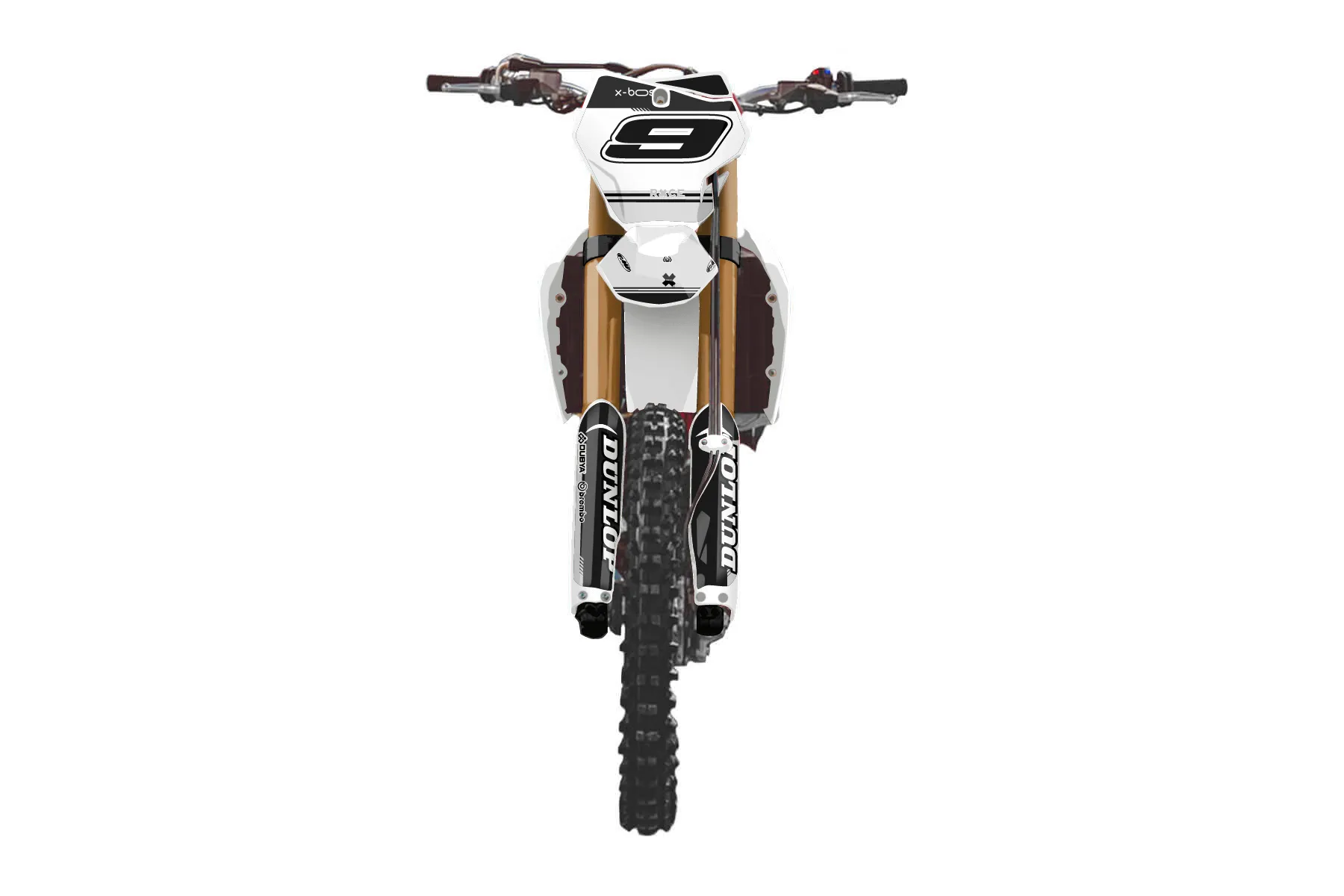 «Poto» — готовый комплект графики серии Untucked для GasGas MX Graphic Kit GasGas MC 350F 2021. В комплекте: графика на бак и боковые облицовки, крылья (переднее и заднее), передний щиток, номерные таблички, защита вилки. Материал: ПВХ-винил 80 мкр с холодной ламинацией 300 мкр, общая толщина 380 мкр; покрытие глянцевое или матовое на выбор. Устойчив к UV-излучению, воде, бензину и мойке высокого давления. Клей акриловый на сольвентной основе — постоянный, для гибких пластиков. На простых поверхностях монтируется без нагрева; для сложных изгибов рекомендуем фен. Этот пресет можно заказать как есть или взять за основу в конструкторе: поменять цвета, добавить стартовый номер и свой бренд. Производство — 3–5 рабочих дней, доставка по России СДЭКом или Почтой, по СНГ — курьерскими службами.