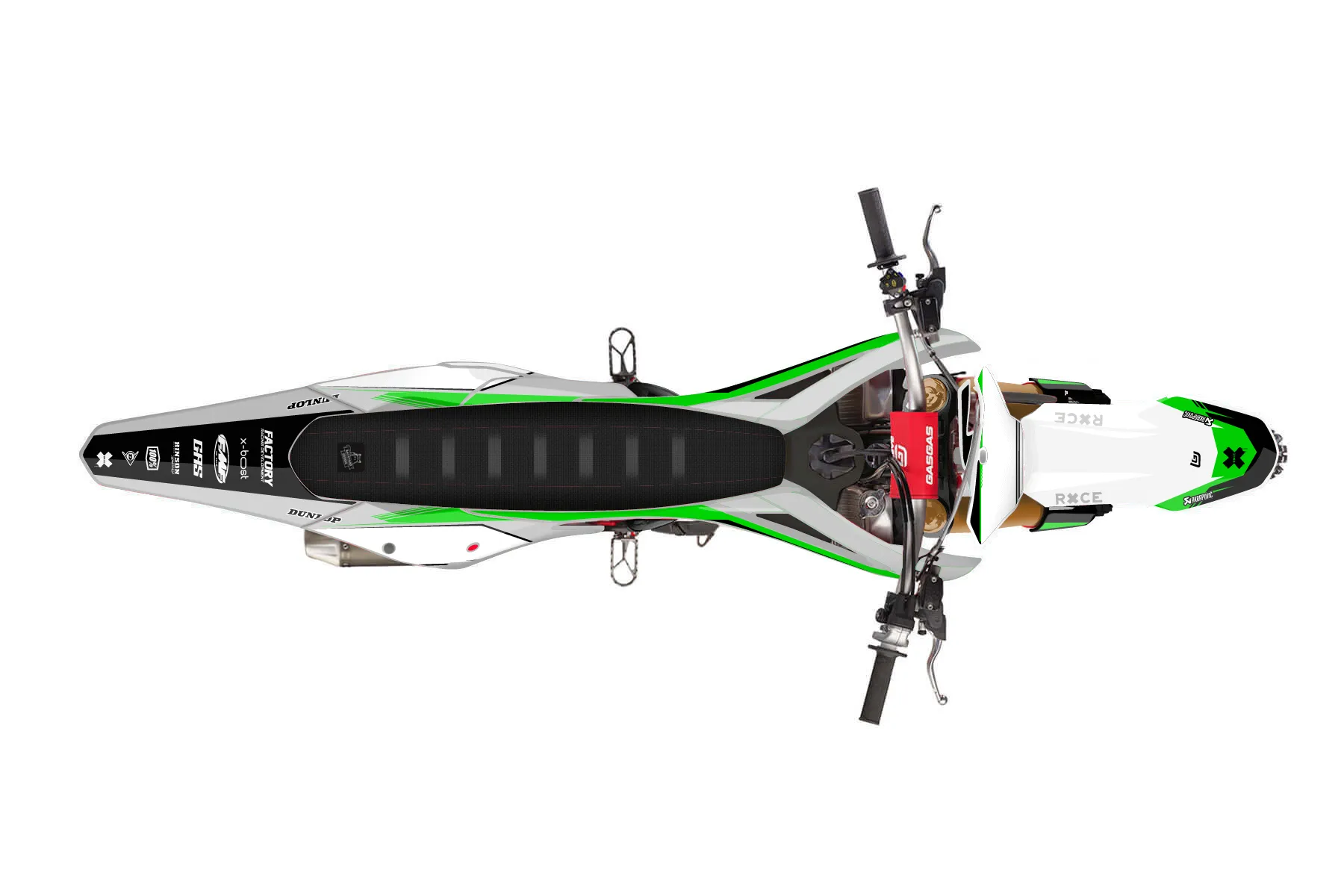 «Vivid Neon» — готовый комплект графики серии Untucked для GasGas MX Graphic Kit GasGas MC 350F 2021. В комплекте: графика на бак и боковые облицовки, крылья (переднее и заднее), передний щиток, номерные таблички, защита вилки. Материал: ПВХ-винил 80 мкр с холодной ламинацией 300 мкр, общая толщина 380 мкр; покрытие глянцевое или матовое на выбор. Устойчив к UV-излучению, воде, бензину и мойке высокого давления. Клей акриловый на сольвентной основе — постоянный, для гибких пластиков. На простых поверхностях монтируется без нагрева; для сложных изгибов рекомендуем фен. Этот пресет можно заказать как есть или взять за основу в конструкторе: поменять цвета, добавить стартовый номер и свой бренд. Производство — 3–5 рабочих дней, доставка по России СДЭКом или Почтой, по СНГ — курьерскими службами.