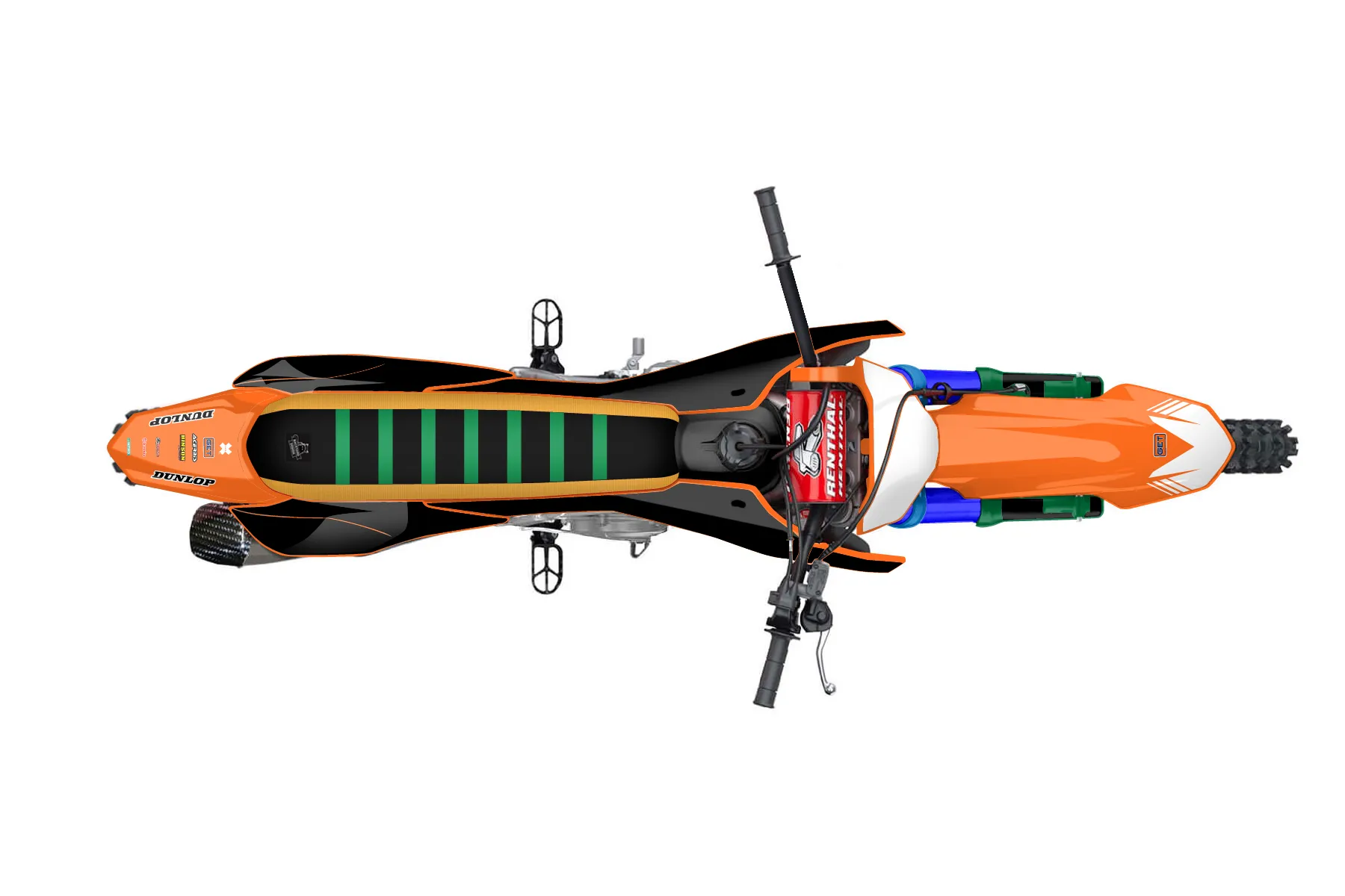 «BUJOLI» — готовый комплект графики серии Factory для Honda Pitbike Graphic Kit CRF 110 2019. В комплекте: графика на бак и боковые облицовки, крылья (переднее и заднее), передний щиток, номерные таблички, защита вилки. Материал: ПВХ-винил 80 мкр с холодной ламинацией 300 мкр, общая толщина 380 мкр; покрытие глянцевое или матовое на выбор. Устойчив к UV-излучению, воде, бензину и мойке высокого давления. Клей акриловый на сольвентной основе — постоянный, для гибких пластиков. На простых поверхностях монтируется без нагрева; для сложных изгибов рекомендуем фен. Этот пресет можно заказать как есть или взять за основу в конструкторе: поменять цвета, добавить стартовый номер и свой бренд. Производство — 3–5 рабочих дней, доставка по России СДЭКом или Почтой, по СНГ — курьерскими службами.
