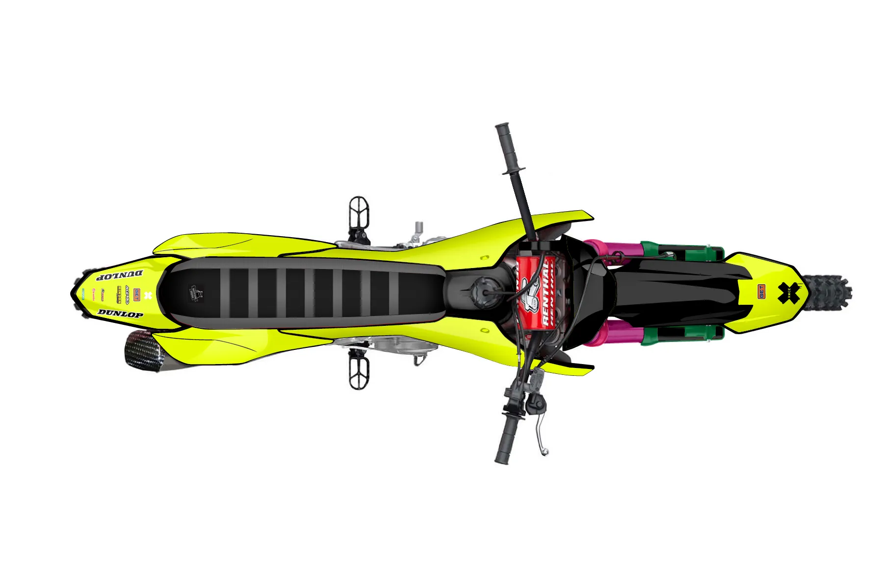 «excf test1» — готовый комплект графики серии Replica для Honda Pitbike Graphic Kit CRF 110 2019. В комплекте: графика на бак и боковые облицовки, крылья (переднее и заднее), передний щиток, номерные таблички, защита вилки. Материал: ПВХ-винил 80 мкр с холодной ламинацией 300 мкр, общая толщина 380 мкр; покрытие глянцевое или матовое на выбор. Устойчив к UV-излучению, воде, бензину и мойке высокого давления. Клей акриловый на сольвентной основе — постоянный, для гибких пластиков. На простых поверхностях монтируется без нагрева; для сложных изгибов рекомендуем фен. Этот пресет можно заказать как есть или взять за основу в конструкторе: поменять цвета, добавить стартовый номер и свой бренд. Производство — 3–5 рабочих дней, доставка по России СДЭКом или Почтой, по СНГ — курьерскими службами.