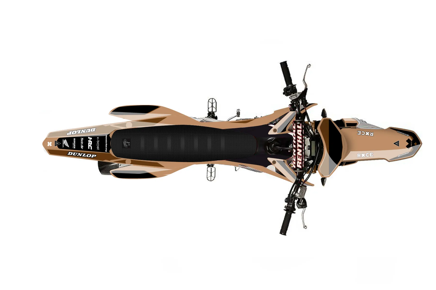 «Unique» — готовый комплект графики серии Flow для Honda MX Graphic Kit Honda CRF250R 2014. В комплекте: графика на бак и боковые облицовки, крылья (переднее и заднее), передний щиток, номерные таблички, защита вилки. Материал: ПВХ-винил 80 мкр с холодной ламинацией 300 мкр, общая толщина 380 мкр; покрытие глянцевое или матовое на выбор. Устойчив к UV-излучению, воде, бензину и мойке высокого давления. Клей акриловый на сольвентной основе — постоянный, для гибких пластиков. На простых поверхностях монтируется без нагрева; для сложных изгибов рекомендуем фен. Этот пресет можно заказать как есть или взять за основу в конструкторе: поменять цвета, добавить стартовый номер и свой бренд. Производство — 3–5 рабочих дней, доставка по России СДЭКом или Почтой, по СНГ — курьерскими службами.