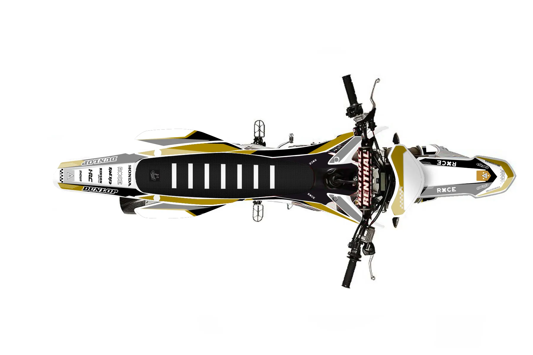 «250» — готовый комплект графики серии Staple для Honda MX Graphic Kit Honda CRF250R 2014. В комплекте: графика на бак и боковые облицовки, крылья (переднее и заднее), передний щиток, номерные таблички, защита вилки. Материал: ПВХ-винил 80 мкр с холодной ламинацией 300 мкр, общая толщина 380 мкр; покрытие глянцевое или матовое на выбор. Устойчив к UV-излучению, воде, бензину и мойке высокого давления. Клей акриловый на сольвентной основе — постоянный, для гибких пластиков. На простых поверхностях монтируется без нагрева; для сложных изгибов рекомендуем фен. Этот пресет можно заказать как есть или взять за основу в конструкторе: поменять цвета, добавить стартовый номер и свой бренд. Производство — 3–5 рабочих дней, доставка по России СДЭКом или Почтой, по СНГ — курьерскими службами.