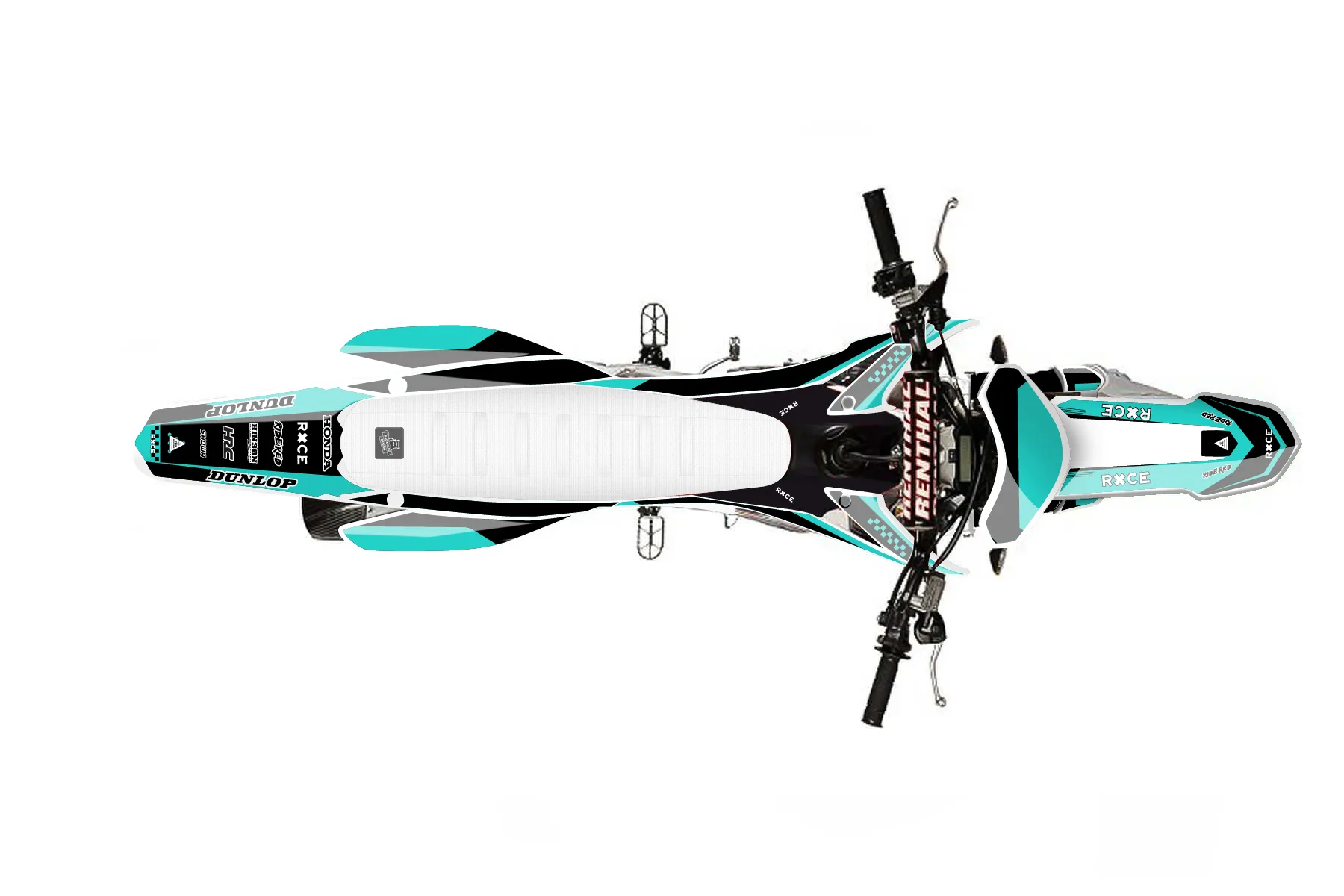 «My bday» — готовый комплект графики серии Staple для Honda MX Graphic Kit Honda CRF250R 2014. В комплекте: графика на бак и боковые облицовки, крылья (переднее и заднее), передний щиток, номерные таблички, защита вилки. Материал: ПВХ-винил 80 мкр с холодной ламинацией 300 мкр, общая толщина 380 мкр; покрытие глянцевое или матовое на выбор. Устойчив к UV-излучению, воде, бензину и мойке высокого давления. Клей акриловый на сольвентной основе — постоянный, для гибких пластиков. На простых поверхностях монтируется без нагрева; для сложных изгибов рекомендуем фен. Этот пресет можно заказать как есть или взять за основу в конструкторе: поменять цвета, добавить стартовый номер и свой бренд. Производство — 3–5 рабочих дней, доставка по России СДЭКом или Почтой, по СНГ — курьерскими службами.