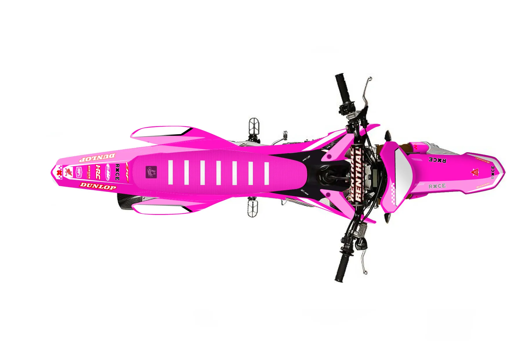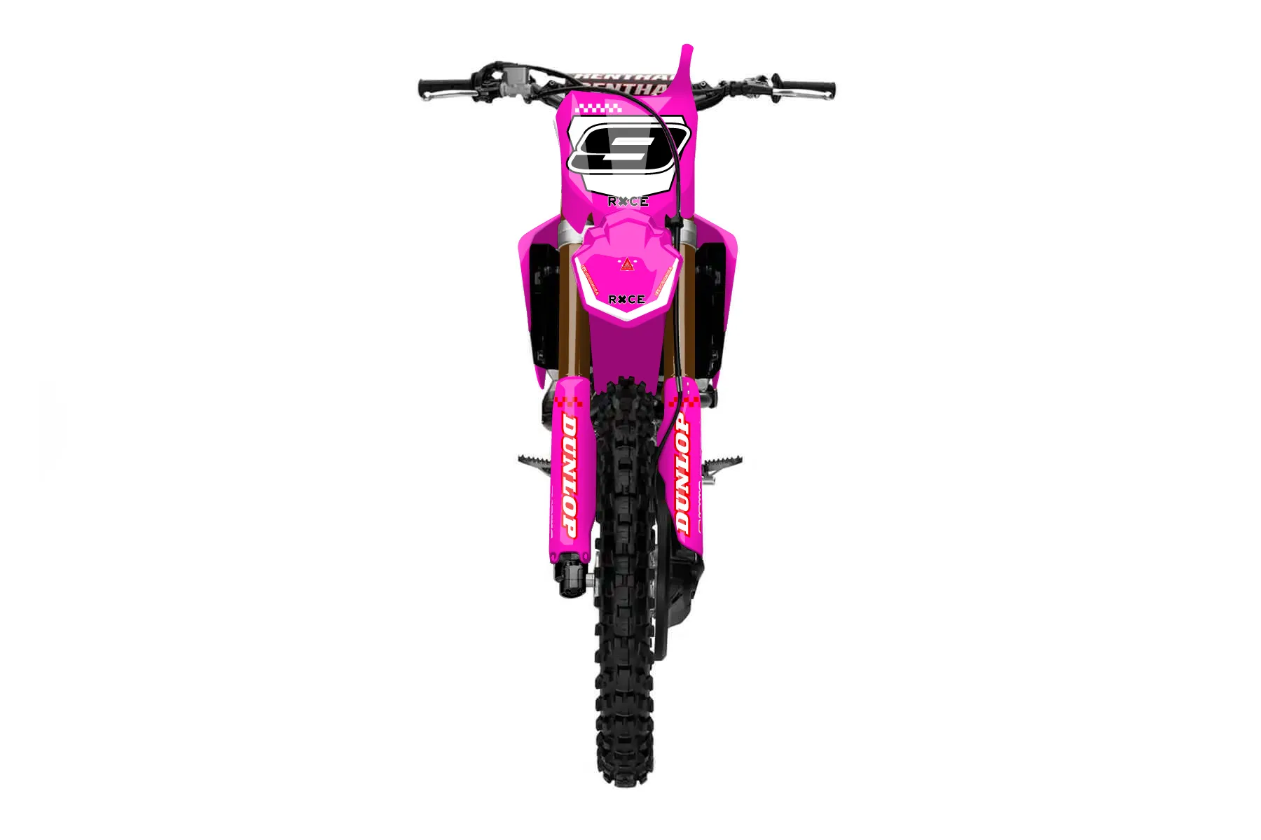 «pink 250r» — готовый комплект графики серии Staple для Honda MX Graphic Kit Honda CRF250R 2015. В комплекте: графика на бак и боковые облицовки, крылья (переднее и заднее), передний щиток, номерные таблички, защита вилки. Материал: ПВХ-винил 80 мкр с холодной ламинацией 300 мкр, общая толщина 380 мкр; покрытие глянцевое или матовое на выбор. Устойчив к UV-излучению, воде, бензину и мойке высокого давления. Клей акриловый на сольвентной основе — постоянный, для гибких пластиков. На простых поверхностях монтируется без нагрева; для сложных изгибов рекомендуем фен. Этот пресет можно заказать как есть или взять за основу в конструкторе: поменять цвета, добавить стартовый номер и свой бренд. Производство — 3–5 рабочих дней, доставка по России СДЭКом или Почтой, по СНГ — курьерскими службами.