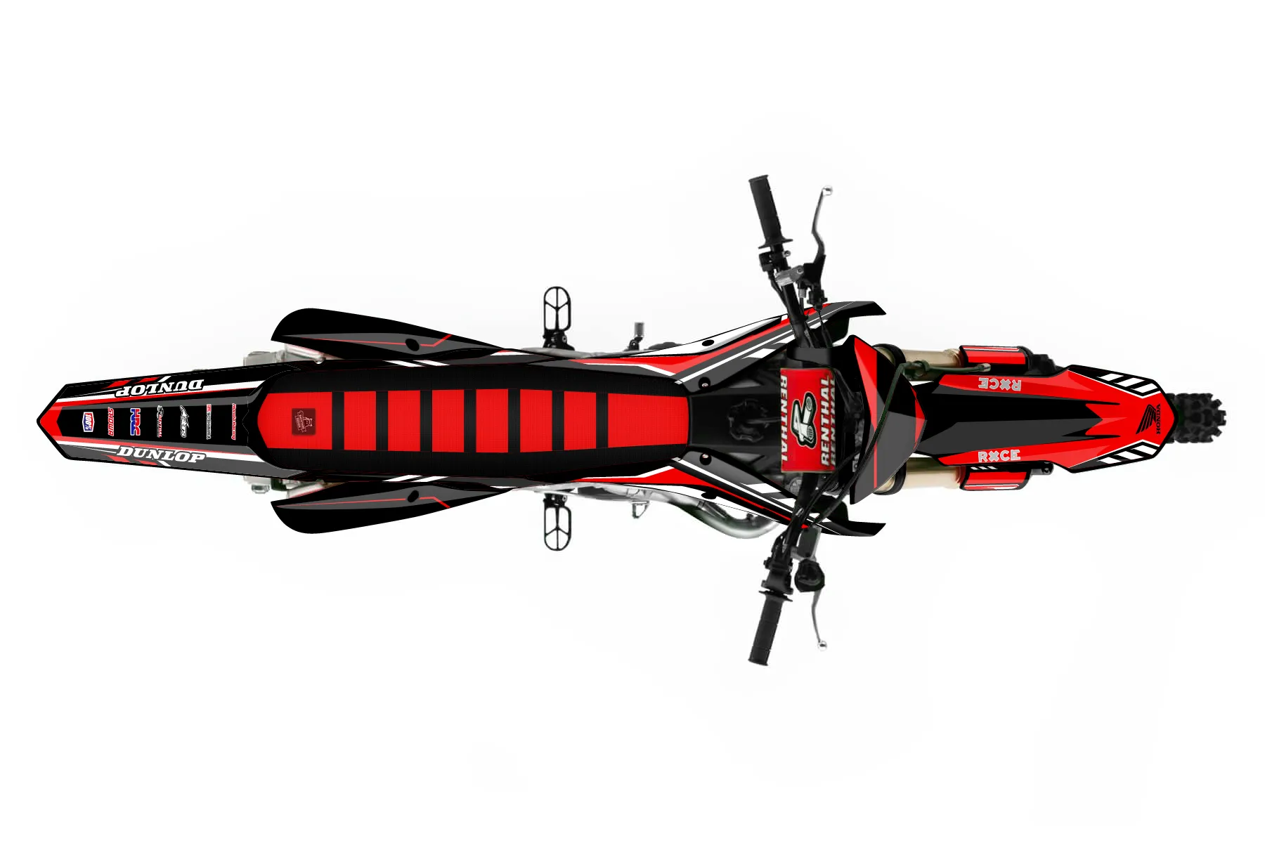 «crf 250r white red black kit» — готовый комплект графики серии Maverick для Honda MX Graphic Kit Honda CRF250R 2018. В комплекте: графика на бак и боковые облицовки, крылья (переднее и заднее), передний щиток, номерные таблички, защита вилки. Материал: ПВХ-винил 80 мкр с холодной ламинацией 300 мкр, общая толщина 380 мкр; покрытие глянцевое или матовое на выбор. Устойчив к UV-излучению, воде, бензину и мойке высокого давления. Клей акриловый на сольвентной основе — постоянный, для гибких пластиков. На простых поверхностях монтируется без нагрева; для сложных изгибов рекомендуем фен. Этот пресет можно заказать как есть или взять за основу в конструкторе: поменять цвета, добавить стартовый номер и свой бренд. Производство — 3–5 рабочих дней, доставка по России СДЭКом или Почтой, по СНГ — курьерскими службами.