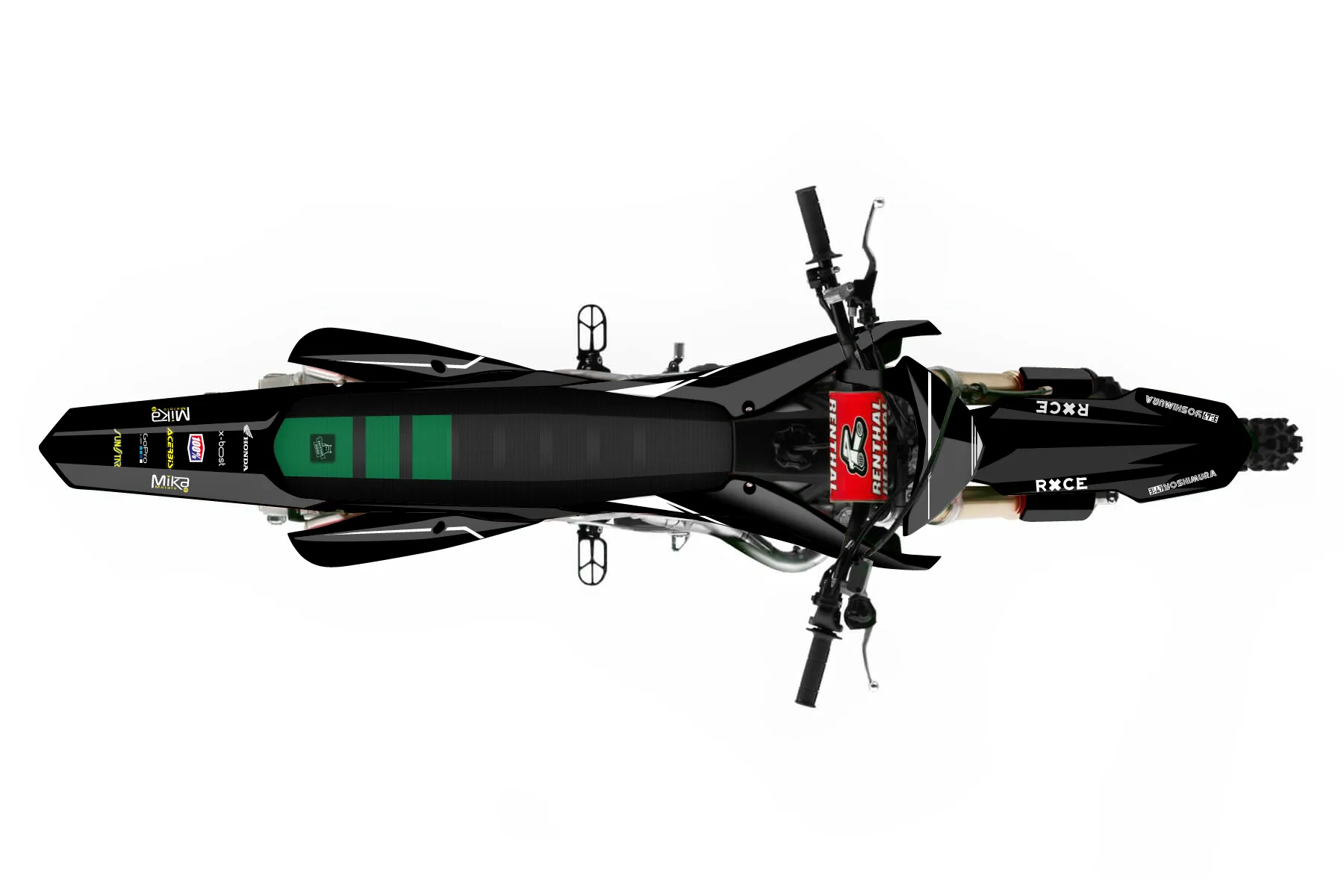 «2023 Race Bike» — готовый комплект графики серии Untucked для Honda MX Graphic Kit Honda CRF250R 2019. В комплекте: графика на бак и боковые облицовки, крылья (переднее и заднее), передний щиток, номерные таблички, защита вилки. Материал: ПВХ-винил 80 мкр с холодной ламинацией 300 мкр, общая толщина 380 мкр; покрытие глянцевое или матовое на выбор. Устойчив к UV-излучению, воде, бензину и мойке высокого давления. Клей акриловый на сольвентной основе — постоянный, для гибких пластиков. На простых поверхностях монтируется без нагрева; для сложных изгибов рекомендуем фен. Этот пресет можно заказать как есть или взять за основу в конструкторе: поменять цвета, добавить стартовый номер и свой бренд. Производство — 3–5 рабочих дней, доставка по России СДЭКом или Почтой, по СНГ — курьерскими службами.