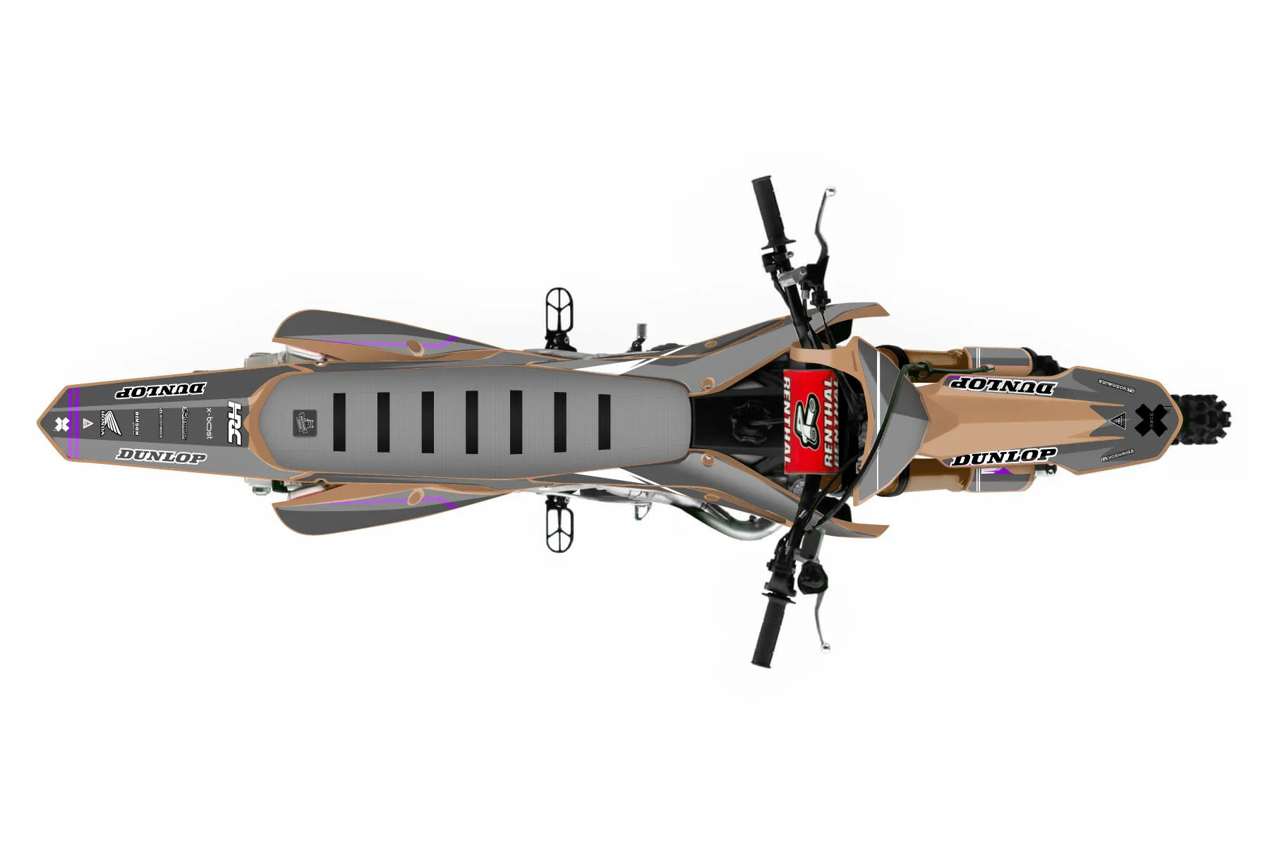 «gray 250» — готовый комплект графики серии Untucked для Honda MX Graphic Kit Honda CRF250R 2019. В комплекте: графика на бак и боковые облицовки, крылья (переднее и заднее), передний щиток, номерные таблички, защита вилки. Материал: ПВХ-винил 80 мкр с холодной ламинацией 300 мкр, общая толщина 380 мкр; покрытие глянцевое или матовое на выбор. Устойчив к UV-излучению, воде, бензину и мойке высокого давления. Клей акриловый на сольвентной основе — постоянный, для гибких пластиков. На простых поверхностях монтируется без нагрева; для сложных изгибов рекомендуем фен. Этот пресет можно заказать как есть или взять за основу в конструкторе: поменять цвета, добавить стартовый номер и свой бренд. Производство — 3–5 рабочих дней, доставка по России СДЭКом или Почтой, по СНГ — курьерскими службами.