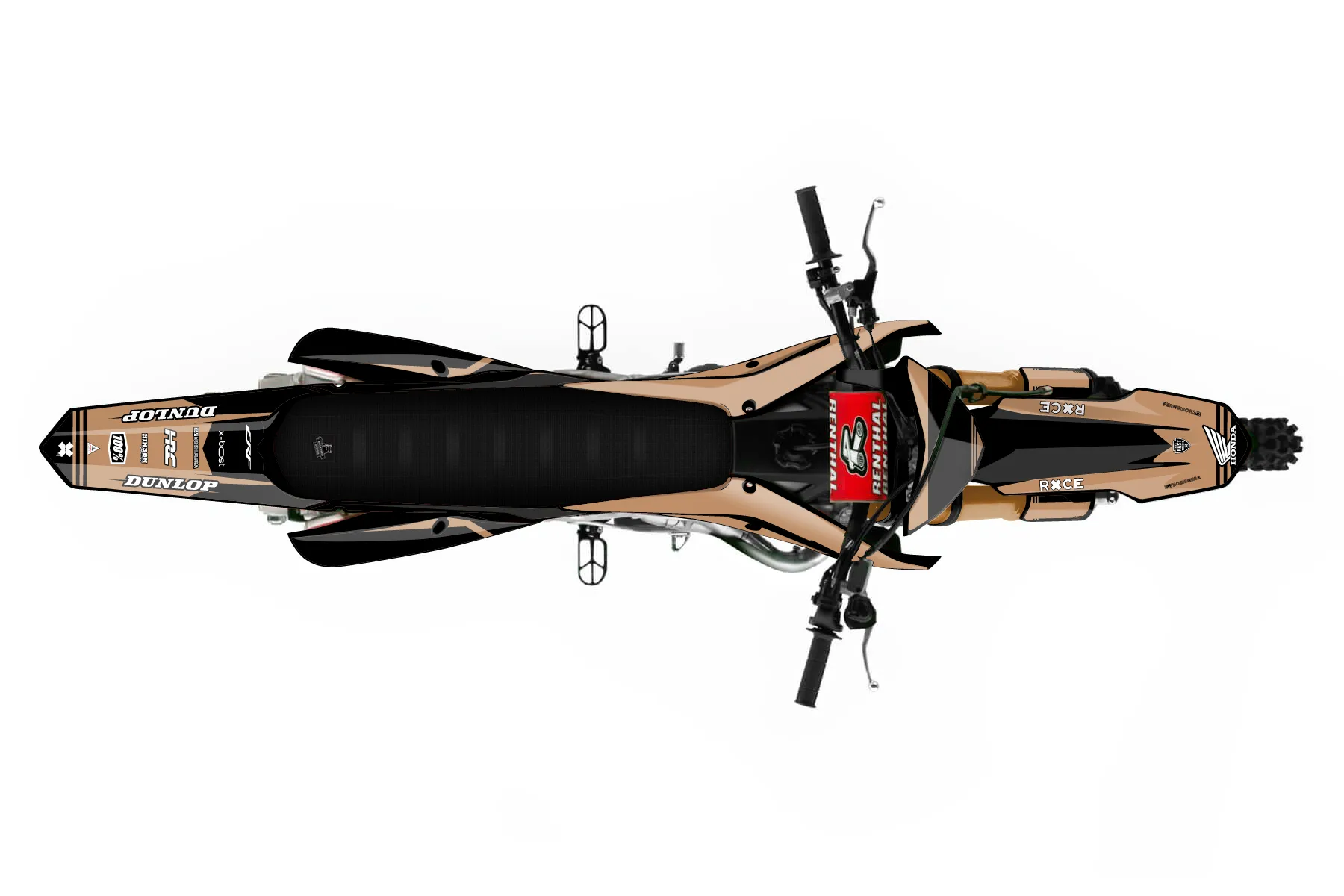«honda crf 250r» — готовый комплект графики серии Untucked для Honda MX Graphic Kit Honda CRF250R 2019. В комплекте: графика на бак и боковые облицовки, крылья (переднее и заднее), передний щиток, номерные таблички, защита вилки. Материал: ПВХ-винил 80 мкр с холодной ламинацией 300 мкр, общая толщина 380 мкр; покрытие глянцевое или матовое на выбор. Устойчив к UV-излучению, воде, бензину и мойке высокого давления. Клей акриловый на сольвентной основе — постоянный, для гибких пластиков. На простых поверхностях монтируется без нагрева; для сложных изгибов рекомендуем фен. Этот пресет можно заказать как есть или взять за основу в конструкторе: поменять цвета, добавить стартовый номер и свой бренд. Производство — 3–5 рабочих дней, доставка по России СДЭКом или Почтой, по СНГ — курьерскими службами.