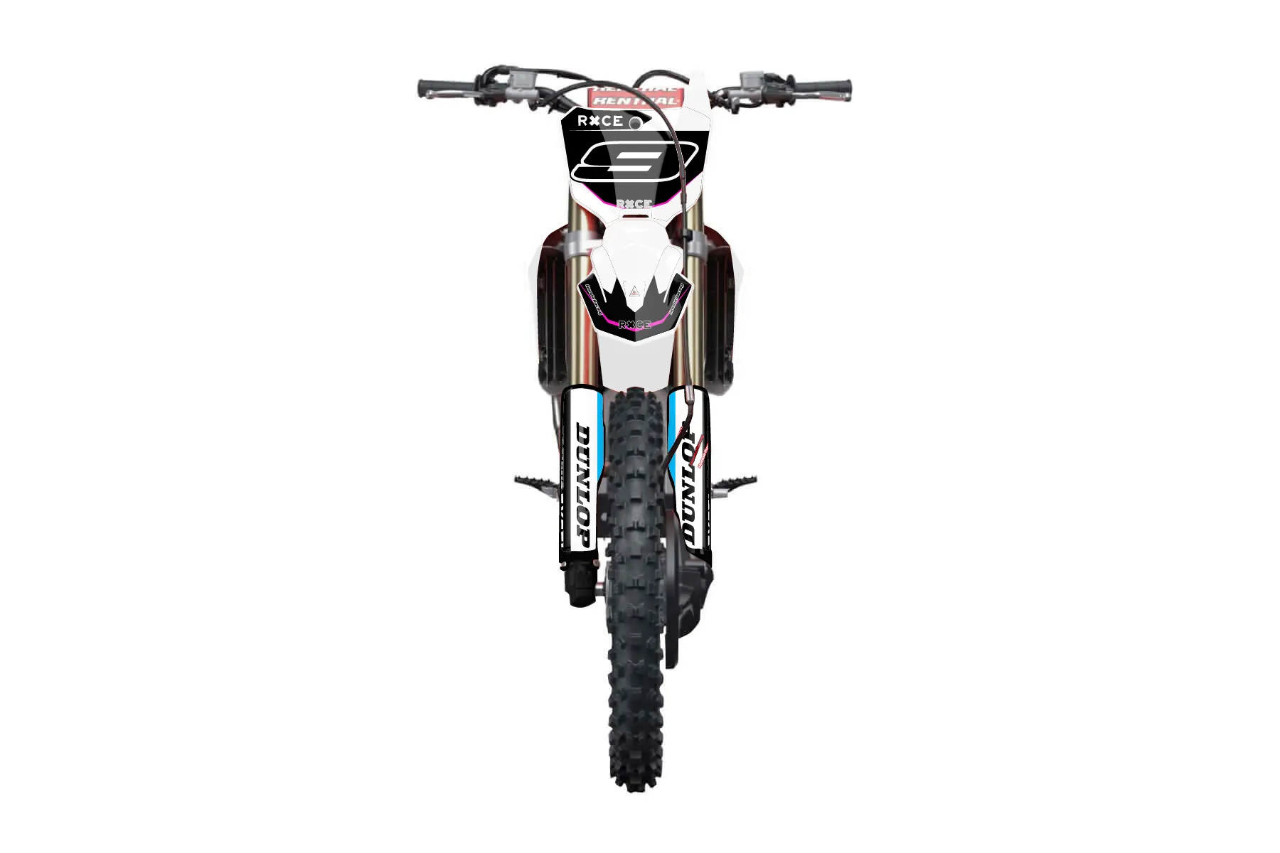 «Pattern» — готовый комплект графики серии Flow для Honda MX Graphic Kit Honda CRF250R 2022. В комплекте: графика на бак и боковые облицовки, крылья (переднее и заднее), передний щиток, номерные таблички, защита вилки. Материал: ПВХ-винил 80 мкр с холодной ламинацией 300 мкр, общая толщина 380 мкр; покрытие глянцевое или матовое на выбор. Устойчив к UV-излучению, воде, бензину и мойке высокого давления. Клей акриловый на сольвентной основе — постоянный, для гибких пластиков. На простых поверхностях монтируется без нагрева; для сложных изгибов рекомендуем фен. Этот пресет можно заказать как есть или взять за основу в конструкторе: поменять цвета, добавить стартовый номер и свой бренд. Производство — 3–5 рабочих дней, доставка по России СДЭКом или Почтой, по СНГ — курьерскими службами.