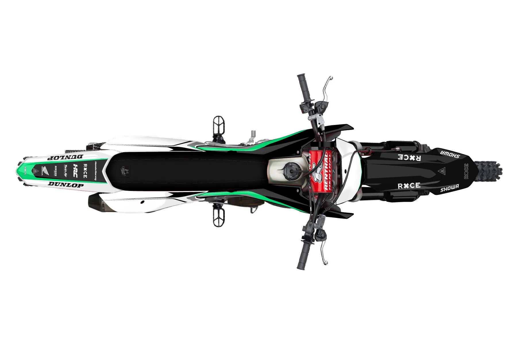 «Vector» — готовый комплект графики серии Flow для Honda MX Graphic Kit Honda CRF250R 2022. В комплекте: графика на бак и боковые облицовки, крылья (переднее и заднее), передний щиток, номерные таблички, защита вилки. Материал: ПВХ-винил 80 мкр с холодной ламинацией 300 мкр, общая толщина 380 мкр; покрытие глянцевое или матовое на выбор. Устойчив к UV-излучению, воде, бензину и мойке высокого давления. Клей акриловый на сольвентной основе — постоянный, для гибких пластиков. На простых поверхностях монтируется без нагрева; для сложных изгибов рекомендуем фен. Этот пресет можно заказать как есть или взять за основу в конструкторе: поменять цвета, добавить стартовый номер и свой бренд. Производство — 3–5 рабочих дней, доставка по России СДЭКом или Почтой, по СНГ — курьерскими службами.