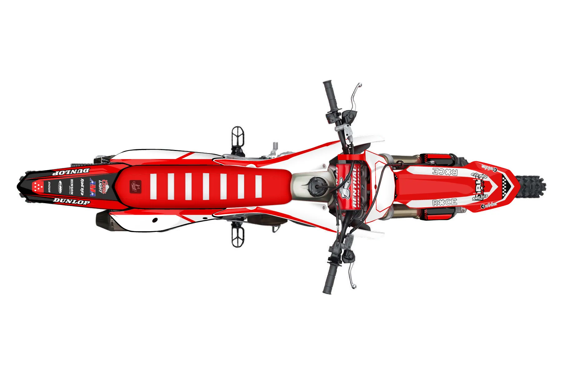 «CustomDesign» — готовый комплект графики серии Staple для Honda MX Graphic Kit Honda CRF250R 2022. В комплекте: графика на бак и боковые облицовки, крылья (переднее и заднее), передний щиток, номерные таблички, защита вилки. Материал: ПВХ-винил 80 мкр с холодной ламинацией 300 мкр, общая толщина 380 мкр; покрытие глянцевое или матовое на выбор. Устойчив к UV-излучению, воде, бензину и мойке высокого давления. Клей акриловый на сольвентной основе — постоянный, для гибких пластиков. На простых поверхностях монтируется без нагрева; для сложных изгибов рекомендуем фен. Этот пресет можно заказать как есть или взять за основу в конструкторе: поменять цвета, добавить стартовый номер и свой бренд. Производство — 3–5 рабочих дней, доставка по России СДЭКом или Почтой, по СНГ — курьерскими службами.