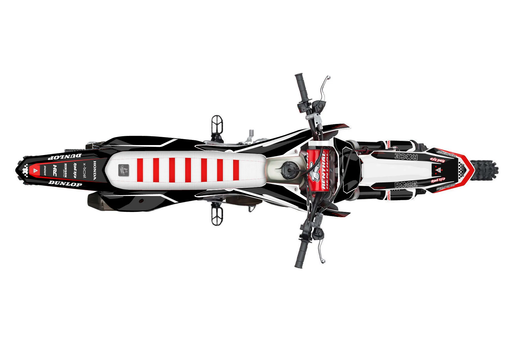 «race bikie» — готовый комплект графики серии Staple для Honda MX Graphic Kit Honda CRF250R 2022. В комплекте: графика на бак и боковые облицовки, крылья (переднее и заднее), передний щиток, номерные таблички, защита вилки. Материал: ПВХ-винил 80 мкр с холодной ламинацией 300 мкр, общая толщина 380 мкр; покрытие глянцевое или матовое на выбор. Устойчив к UV-излучению, воде, бензину и мойке высокого давления. Клей акриловый на сольвентной основе — постоянный, для гибких пластиков. На простых поверхностях монтируется без нагрева; для сложных изгибов рекомендуем фен. Этот пресет можно заказать как есть или взять за основу в конструкторе: поменять цвета, добавить стартовый номер и свой бренд. Производство — 3–5 рабочих дней, доставка по России СДЭКом или Почтой, по СНГ — курьерскими службами.