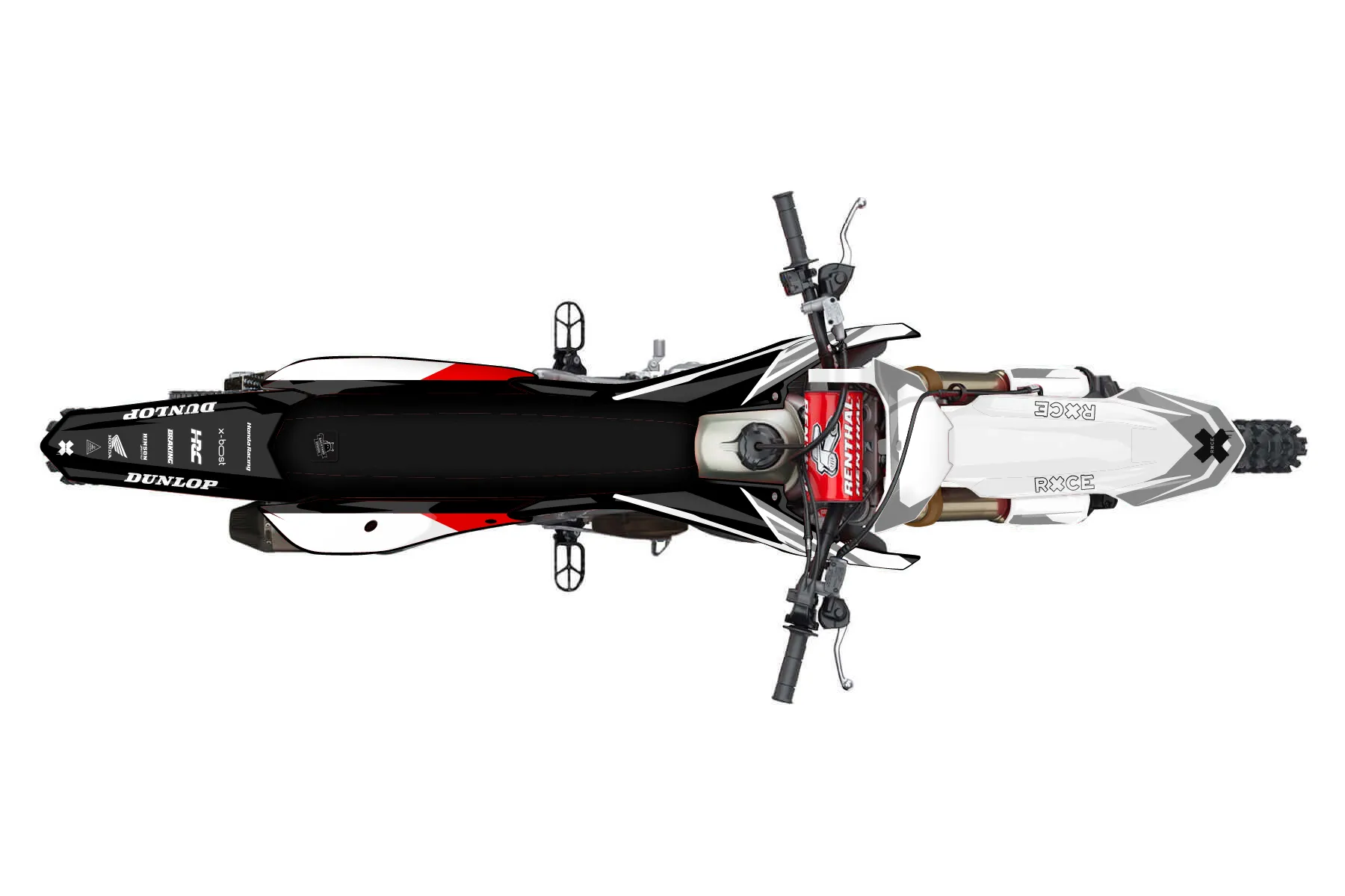 «Tilled» — готовый комплект графики серии Staple для Honda MX Graphic Kit Honda CRF250R 2022. В комплекте: графика на бак и боковые облицовки, крылья (переднее и заднее), передний щиток, номерные таблички, защита вилки. Материал: ПВХ-винил 80 мкр с холодной ламинацией 300 мкр, общая толщина 380 мкр; покрытие глянцевое или матовое на выбор. Устойчив к UV-излучению, воде, бензину и мойке высокого давления. Клей акриловый на сольвентной основе — постоянный, для гибких пластиков. На простых поверхностях монтируется без нагрева; для сложных изгибов рекомендуем фен. Этот пресет можно заказать как есть или взять за основу в конструкторе: поменять цвета, добавить стартовый номер и свой бренд. Производство — 3–5 рабочих дней, доставка по России СДЭКом или Почтой, по СНГ — курьерскими службами.