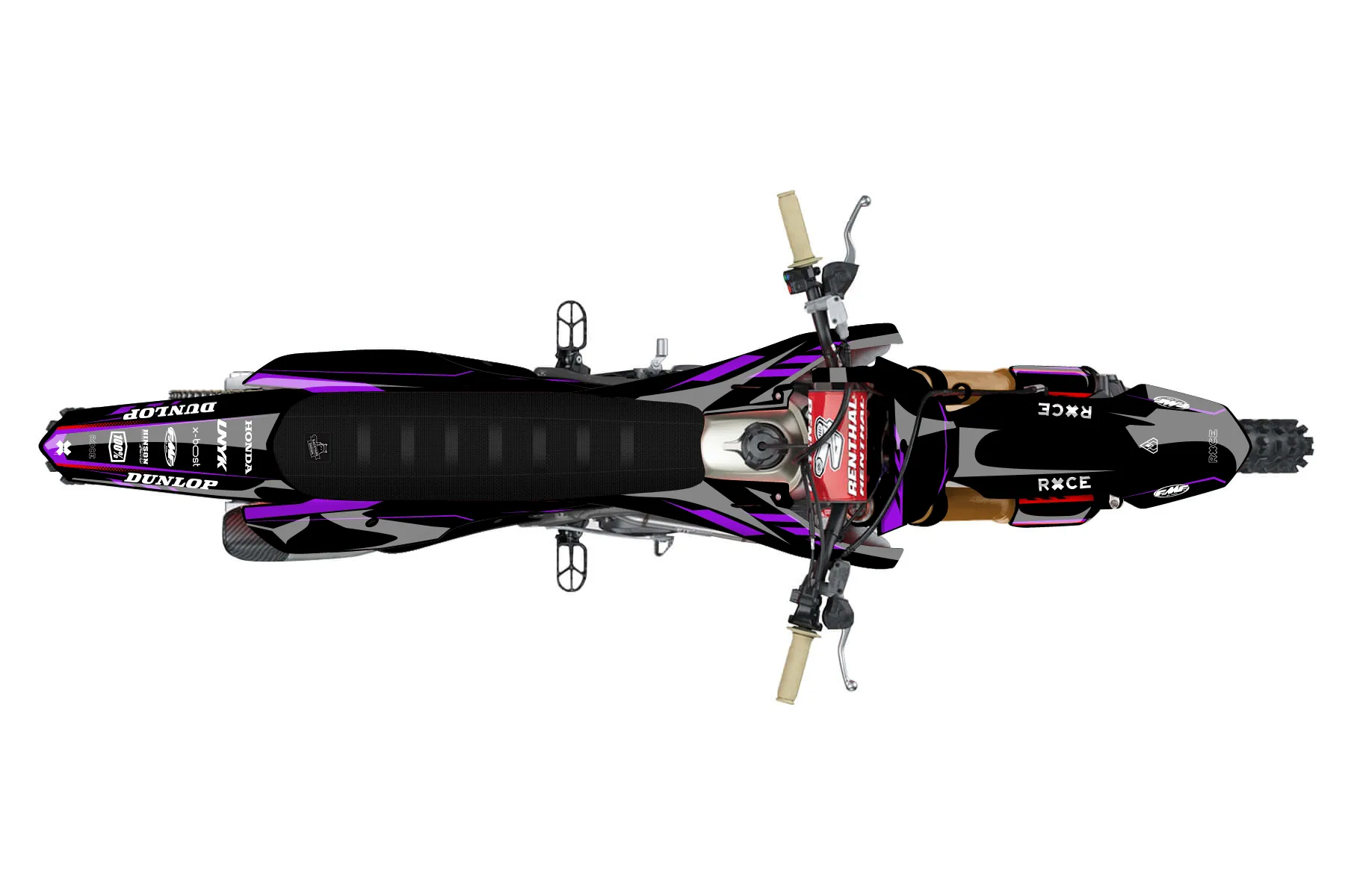 «Number 1» — готовый комплект графики серии Maverick для Honda MX Graphic Kit Honda CRF250R 2025. В комплекте: графика на бак и боковые облицовки, крылья (переднее и заднее), передний щиток, номерные таблички, защита вилки. Материал: ПВХ-винил 80 мкр с холодной ламинацией 300 мкр, общая толщина 380 мкр; покрытие глянцевое или матовое на выбор. Устойчив к UV-излучению, воде, бензину и мойке высокого давления. Клей акриловый на сольвентной основе — постоянный, для гибких пластиков. На простых поверхностях монтируется без нагрева; для сложных изгибов рекомендуем фен. Этот пресет можно заказать как есть или взять за основу в конструкторе: поменять цвета, добавить стартовый номер и свой бренд. Производство — 3–5 рабочих дней, доставка по России СДЭКом или Почтой, по СНГ — курьерскими службами.