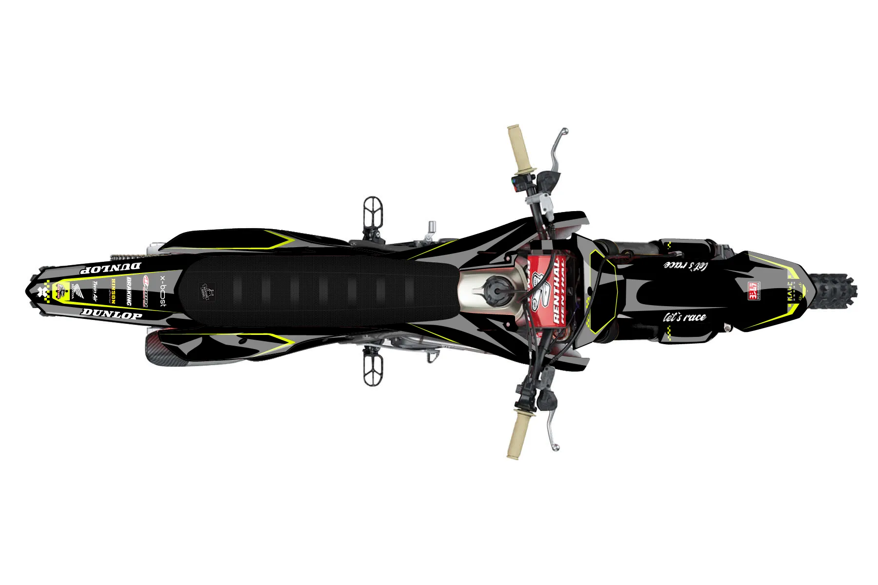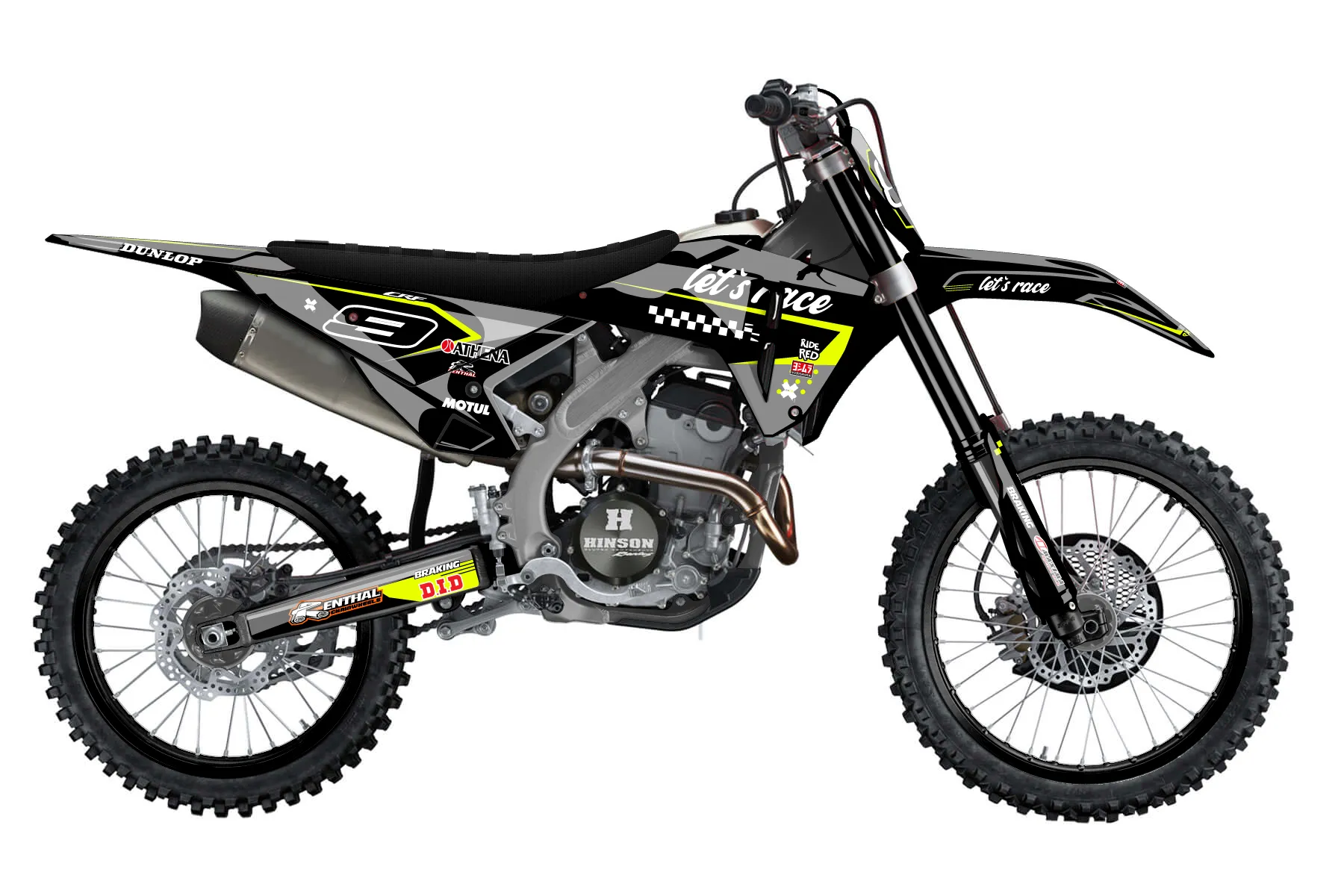 «Bright Neon» — готовый комплект графики серии Staple для Honda MX Graphic Kit Honda CRF250R 2025. В комплекте: графика на бак и боковые облицовки, крылья (переднее и заднее), передний щиток, номерные таблички, защита вилки. Материал: ПВХ-винил 80 мкр с холодной ламинацией 300 мкр, общая толщина 380 мкр; покрытие глянцевое или матовое на выбор. Устойчив к UV-излучению, воде, бензину и мойке высокого давления. Клей акриловый на сольвентной основе — постоянный, для гибких пластиков. На простых поверхностях монтируется без нагрева; для сложных изгибов рекомендуем фен. Этот пресет можно заказать как есть или взять за основу в конструкторе: поменять цвета, добавить стартовый номер и свой бренд. Производство — 3–5 рабочих дней, доставка по России СДЭКом или Почтой, по СНГ — курьерскими службами.
