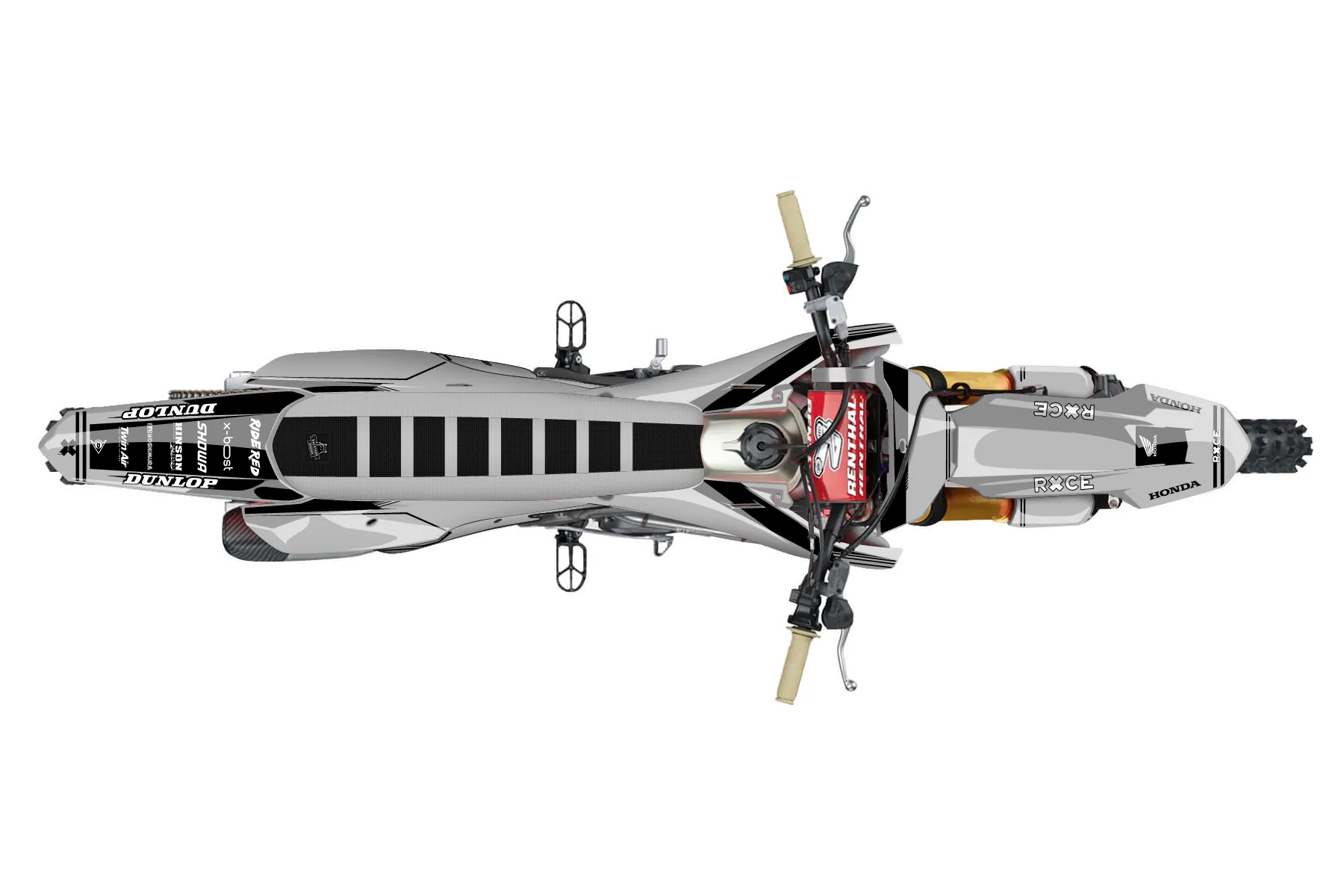 «Ride» — готовый комплект графики серии Untucked для Honda MX Graphic Kit Honda CRF250R 2025. В комплекте: графика на бак и боковые облицовки, крылья (переднее и заднее), передний щиток, номерные таблички, защита вилки. Материал: ПВХ-винил 80 мкр с холодной ламинацией 300 мкр, общая толщина 380 мкр; покрытие глянцевое или матовое на выбор. Устойчив к UV-излучению, воде, бензину и мойке высокого давления. Клей акриловый на сольвентной основе — постоянный, для гибких пластиков. На простых поверхностях монтируется без нагрева; для сложных изгибов рекомендуем фен. Этот пресет можно заказать как есть или взять за основу в конструкторе: поменять цвета, добавить стартовый номер и свой бренд. Производство — 3–5 рабочих дней, доставка по России СДЭКом или Почтой, по СНГ — курьерскими службами.