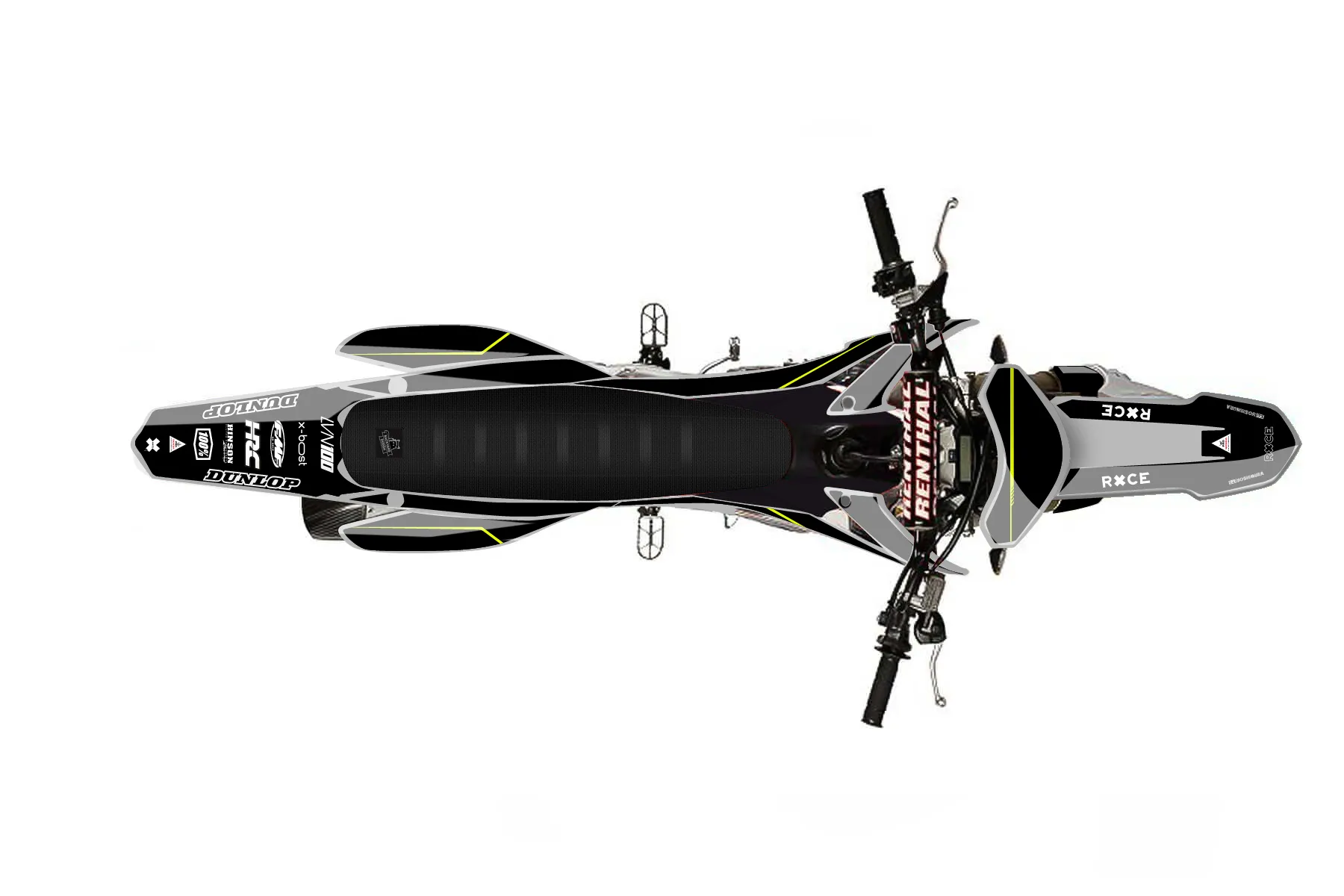 «Ride Neon» — готовый комплект графики серии Untucked для Honda MX Graphic Kit Honda CRF450R 2013. В комплекте: графика на бак и боковые облицовки, крылья (переднее и заднее), передний щиток, номерные таблички, защита вилки. Материал: ПВХ-винил 80 мкр с холодной ламинацией 300 мкр, общая толщина 380 мкр; покрытие глянцевое или матовое на выбор. Устойчив к UV-излучению, воде, бензину и мойке высокого давления. Клей акриловый на сольвентной основе — постоянный, для гибких пластиков. На простых поверхностях монтируется без нагрева; для сложных изгибов рекомендуем фен. Этот пресет можно заказать как есть или взять за основу в конструкторе: поменять цвета, добавить стартовый номер и свой бренд. Производство — 3–5 рабочих дней, доставка по России СДЭКом или Почтой, по СНГ — курьерскими службами.