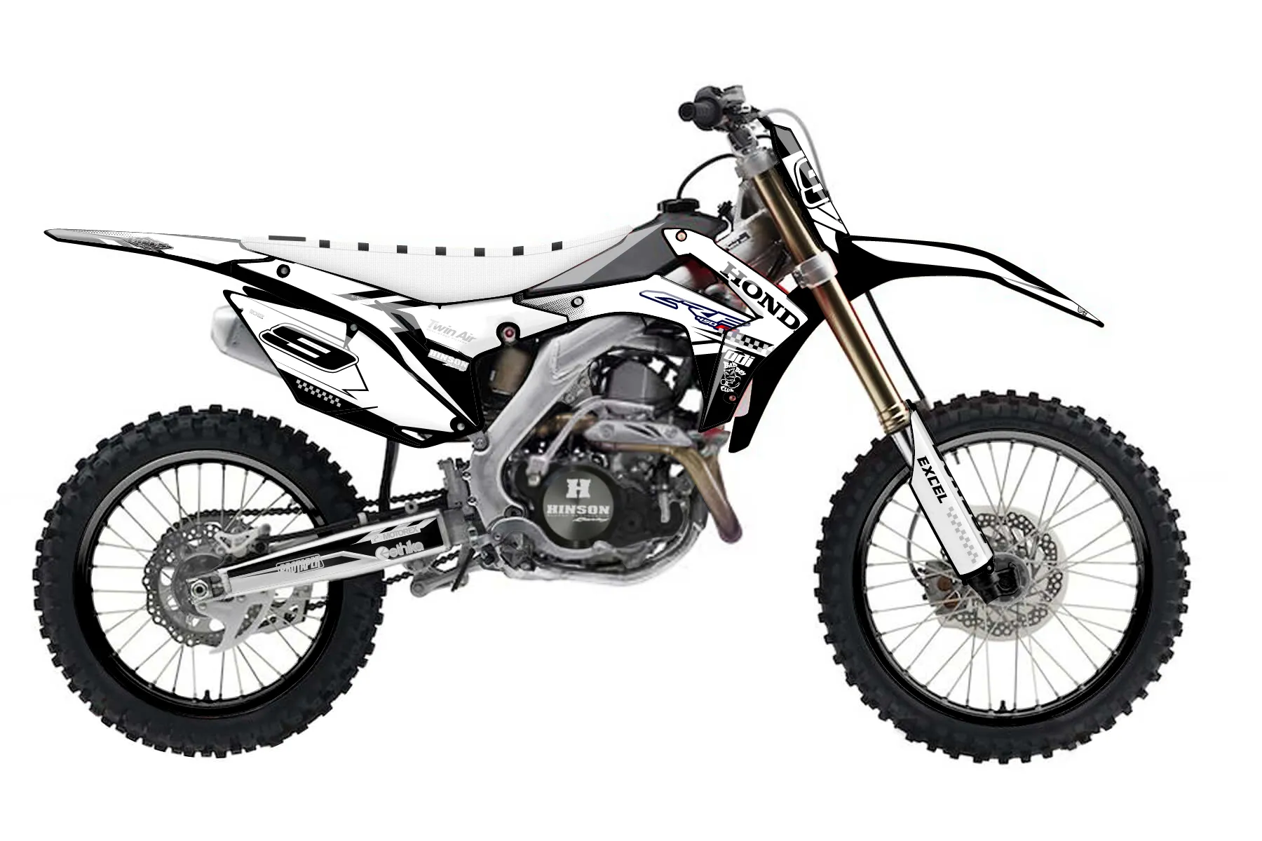 «CustomDesign» — готовый комплект графики серии Maverick для Honda MX Graphic Kit Honda CRF450R 2014. В комплекте: графика на бак и боковые облицовки, крылья (переднее и заднее), передний щиток, номерные таблички, защита вилки. Материал: ПВХ-винил 80 мкр с холодной ламинацией 300 мкр, общая толщина 380 мкр; покрытие глянцевое или матовое на выбор. Устойчив к UV-излучению, воде, бензину и мойке высокого давления. Клей акриловый на сольвентной основе — постоянный, для гибких пластиков. На простых поверхностях монтируется без нагрева; для сложных изгибов рекомендуем фен. Этот пресет можно заказать как есть или взять за основу в конструкторе: поменять цвета, добавить стартовый номер и свой бренд. Производство — 3–5 рабочих дней, доставка по России СДЭКом или Почтой, по СНГ — курьерскими службами.