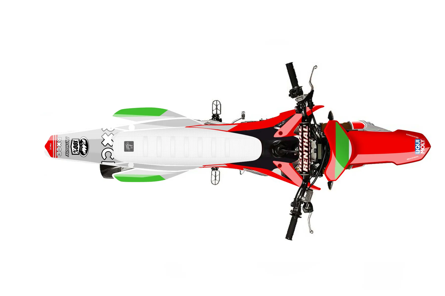 «CustomDesign Final» — готовый комплект графики серии Untucked для Honda MX Graphic Kit Honda CRF450R 2014. В комплекте: графика на бак и боковые облицовки, крылья (переднее и заднее), передний щиток, номерные таблички, защита вилки. Материал: ПВХ-винил 80 мкр с холодной ламинацией 300 мкр, общая толщина 380 мкр; покрытие глянцевое или матовое на выбор. Устойчив к UV-излучению, воде, бензину и мойке высокого давления. Клей акриловый на сольвентной основе — постоянный, для гибких пластиков. На простых поверхностях монтируется без нагрева; для сложных изгибов рекомендуем фен. Этот пресет можно заказать как есть или взять за основу в конструкторе: поменять цвета, добавить стартовый номер и свой бренд. Производство — 3–5 рабочих дней, доставка по России СДЭКом или Почтой, по СНГ — курьерскими службами.