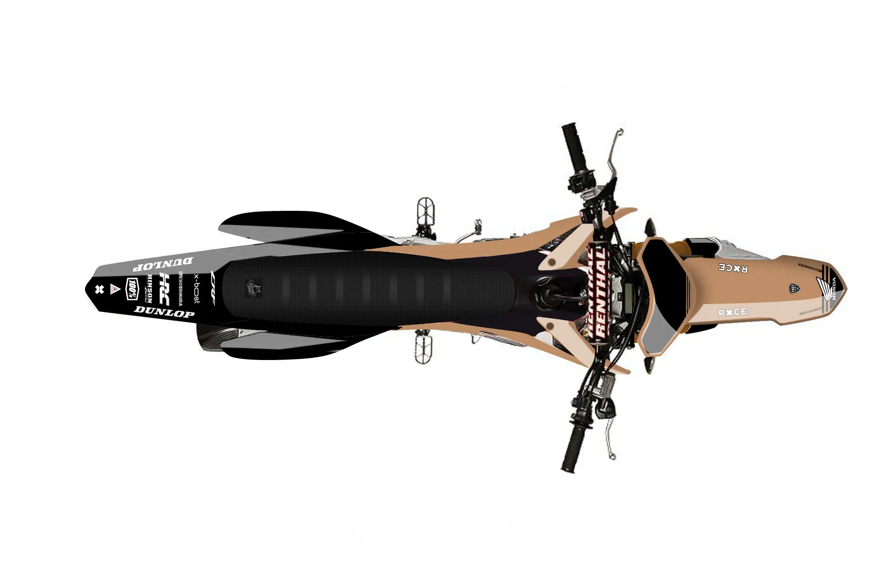 «Future» — готовый комплект графики серии Untucked для Honda MX Graphic Kit Honda CRF450R 2014. В комплекте: графика на бак и боковые облицовки, крылья (переднее и заднее), передний щиток, номерные таблички, защита вилки. Материал: ПВХ-винил 80 мкр с холодной ламинацией 300 мкр, общая толщина 380 мкр; покрытие глянцевое или матовое на выбор. Устойчив к UV-излучению, воде, бензину и мойке высокого давления. Клей акриловый на сольвентной основе — постоянный, для гибких пластиков. На простых поверхностях монтируется без нагрева; для сложных изгибов рекомендуем фен. Этот пресет можно заказать как есть или взять за основу в конструкторе: поменять цвета, добавить стартовый номер и свой бренд. Производство — 3–5 рабочих дней, доставка по России СДЭКом или Почтой, по СНГ — курьерскими службами.