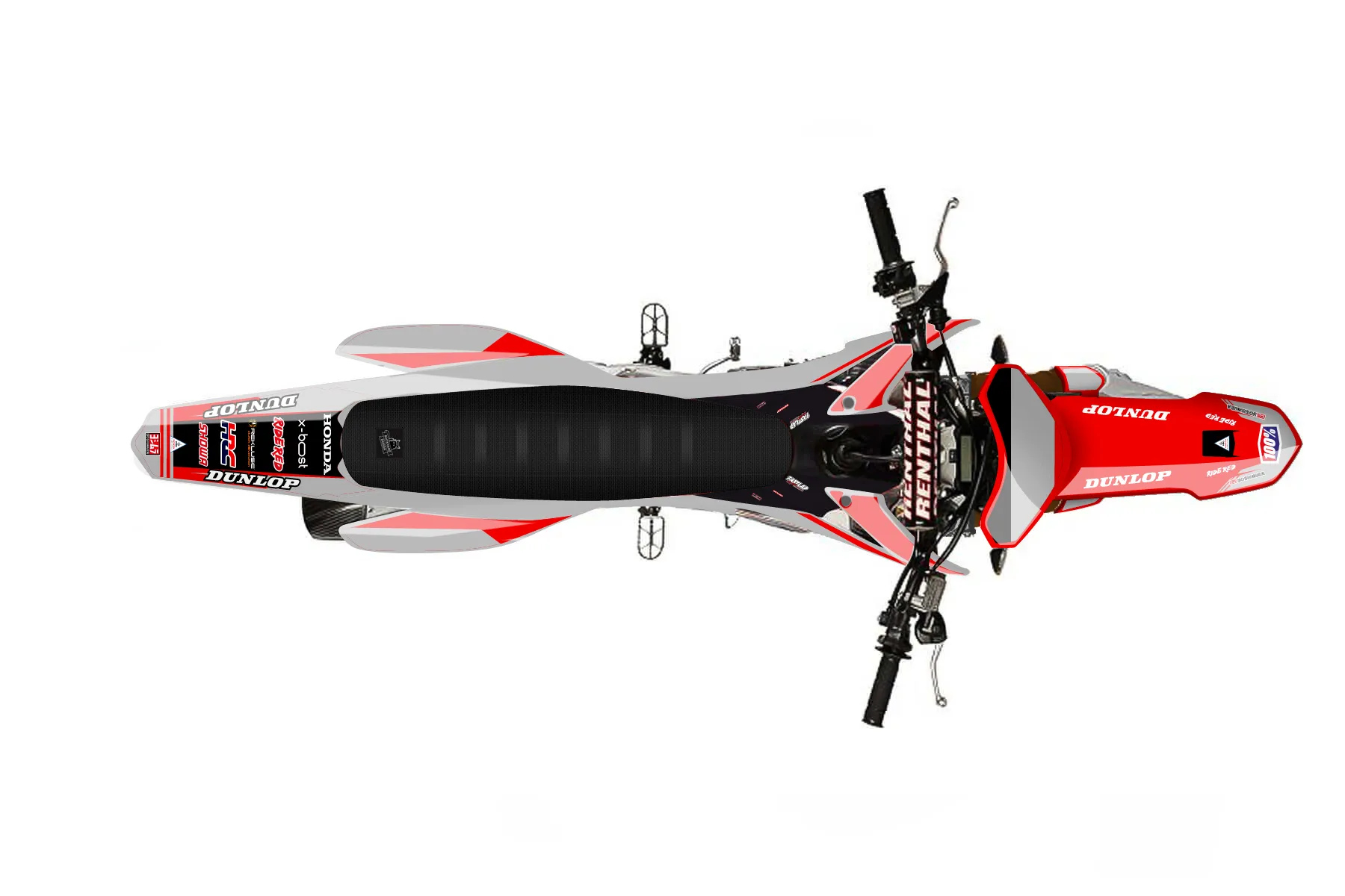 «red and grey crf» — готовый комплект графики серии Untucked для Honda MX Graphic Kit Honda CRF450R 2014. В комплекте: графика на бак и боковые облицовки, крылья (переднее и заднее), передний щиток, номерные таблички, защита вилки. Материал: ПВХ-винил 80 мкр с холодной ламинацией 300 мкр, общая толщина 380 мкр; покрытие глянцевое или матовое на выбор. Устойчив к UV-излучению, воде, бензину и мойке высокого давления. Клей акриловый на сольвентной основе — постоянный, для гибких пластиков. На простых поверхностях монтируется без нагрева; для сложных изгибов рекомендуем фен. Этот пресет можно заказать как есть или взять за основу в конструкторе: поменять цвета, добавить стартовый номер и свой бренд. Производство — 3–5 рабочих дней, доставка по России СДЭКом или Почтой, по СНГ — курьерскими службами.