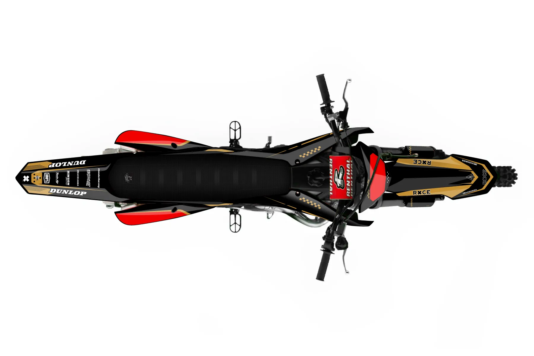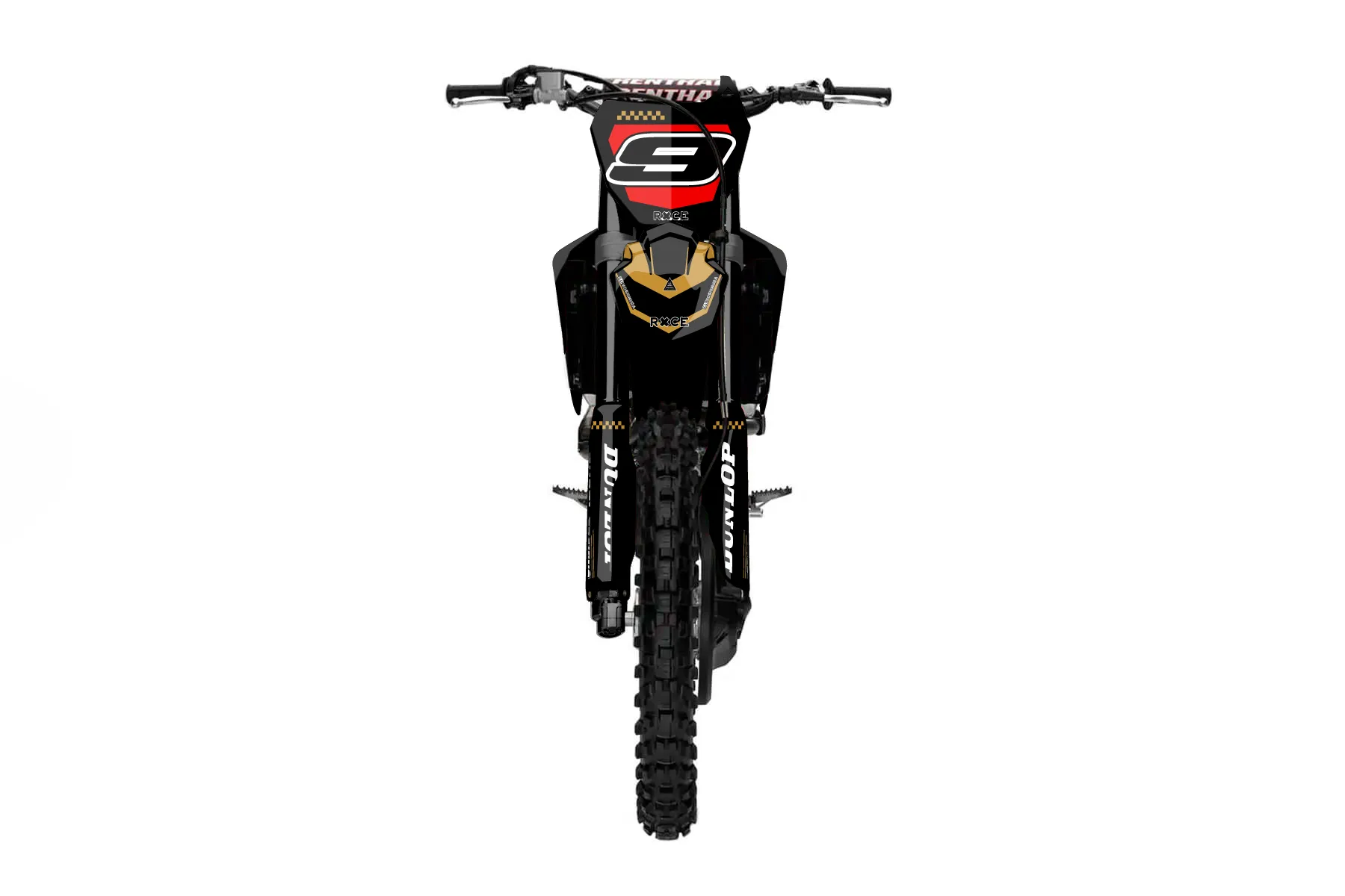 «gold on black» — готовый комплект графики серии Staple для Honda MX Graphic Kit Honda CRF450R 2017. В комплекте: графика на бак и боковые облицовки, крылья (переднее и заднее), передний щиток, номерные таблички, защита вилки. Материал: ПВХ-винил 80 мкр с холодной ламинацией 300 мкр, общая толщина 380 мкр; покрытие глянцевое или матовое на выбор. Устойчив к UV-излучению, воде, бензину и мойке высокого давления. Клей акриловый на сольвентной основе — постоянный, для гибких пластиков. На простых поверхностях монтируется без нагрева; для сложных изгибов рекомендуем фен. Этот пресет можно заказать как есть или взять за основу в конструкторе: поменять цвета, добавить стартовый номер и свой бренд. Производство — 3–5 рабочих дней, доставка по России СДЭКом или Почтой, по СНГ — курьерскими службами.