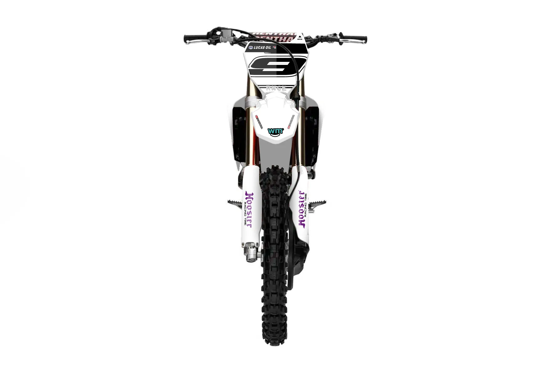 «B&W 450» — готовый комплект графики серии Untucked для Honda MX Graphic Kit Honda CRF450R 2017. В комплекте: графика на бак и боковые облицовки, крылья (переднее и заднее), передний щиток, номерные таблички, защита вилки. Материал: ПВХ-винил 80 мкр с холодной ламинацией 300 мкр, общая толщина 380 мкр; покрытие глянцевое или матовое на выбор. Устойчив к UV-излучению, воде, бензину и мойке высокого давления. Клей акриловый на сольвентной основе — постоянный, для гибких пластиков. На простых поверхностях монтируется без нагрева; для сложных изгибов рекомендуем фен. Этот пресет можно заказать как есть или взять за основу в конструкторе: поменять цвета, добавить стартовый номер и свой бренд. Производство — 3–5 рабочих дней, доставка по России СДЭКом или Почтой, по СНГ — курьерскими службами.