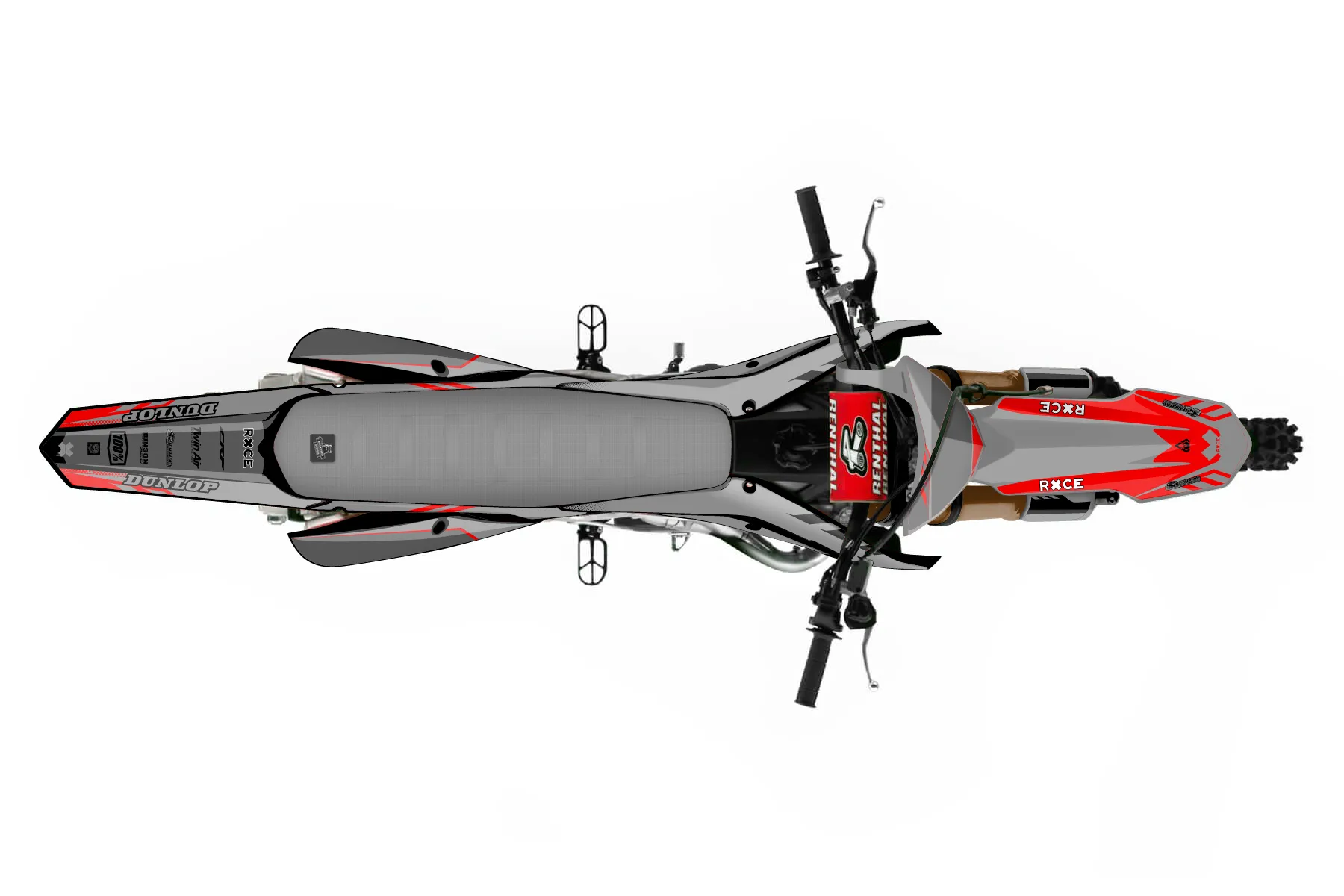 «That_Crf450r» — готовый комплект графики серии Maverick для Honda MX Graphic Kit Honda CRF450R 2019. В комплекте: графика на бак и боковые облицовки, крылья (переднее и заднее), передний щиток, номерные таблички, защита вилки. Материал: ПВХ-винил 80 мкр с холодной ламинацией 300 мкр, общая толщина 380 мкр; покрытие глянцевое или матовое на выбор. Устойчив к UV-излучению, воде, бензину и мойке высокого давления. Клей акриловый на сольвентной основе — постоянный, для гибких пластиков. На простых поверхностях монтируется без нагрева; для сложных изгибов рекомендуем фен. Этот пресет можно заказать как есть или взять за основу в конструкторе: поменять цвета, добавить стартовый номер и свой бренд. Производство — 3–5 рабочих дней, доставка по России СДЭКом или Почтой, по СНГ — курьерскими службами.