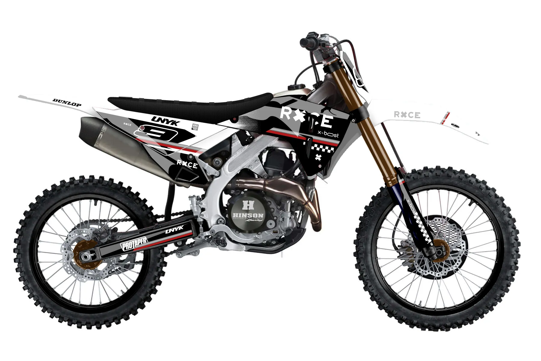 «Direction» — готовый комплект графики серии Maverick для Honda MX Graphic Kit Honda CRF450R 2025. В комплекте: графика на бак и боковые облицовки, крылья (переднее и заднее), передний щиток, номерные таблички, защита вилки. Материал: ПВХ-винил 80 мкр с холодной ламинацией 300 мкр, общая толщина 380 мкр; покрытие глянцевое или матовое на выбор. Устойчив к UV-излучению, воде, бензину и мойке высокого давления. Клей акриловый на сольвентной основе — постоянный, для гибких пластиков. На простых поверхностях монтируется без нагрева; для сложных изгибов рекомендуем фен. Этот пресет можно заказать как есть или взять за основу в конструкторе: поменять цвета, добавить стартовый номер и свой бренд. Производство — 3–5 рабочих дней, доставка по России СДЭКом или Почтой, по СНГ — курьерскими службами.