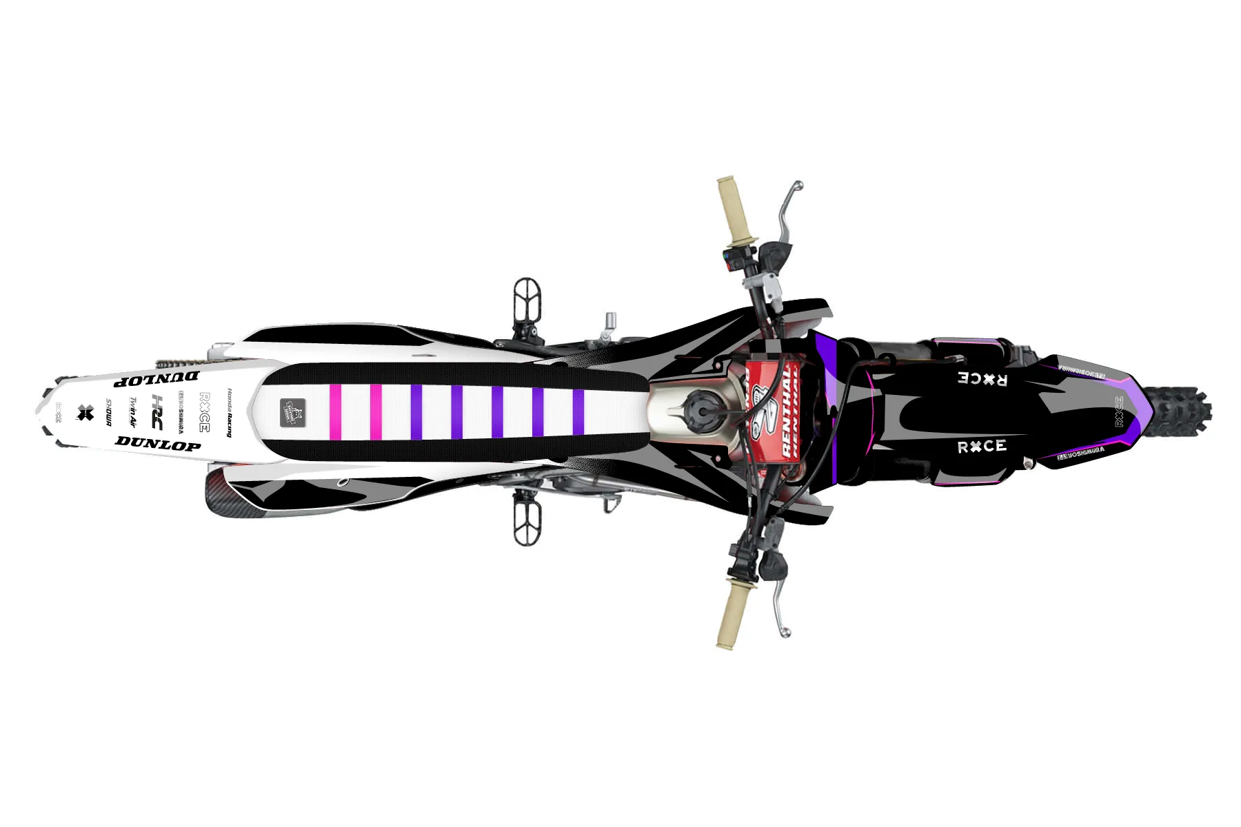«Invent» — готовый комплект графики серии Maverick для Honda MX Graphic Kit Honda CRF450R 2025. В комплекте: графика на бак и боковые облицовки, крылья (переднее и заднее), передний щиток, номерные таблички, защита вилки. Материал: ПВХ-винил 80 мкр с холодной ламинацией 300 мкр, общая толщина 380 мкр; покрытие глянцевое или матовое на выбор. Устойчив к UV-излучению, воде, бензину и мойке высокого давления. Клей акриловый на сольвентной основе — постоянный, для гибких пластиков. На простых поверхностях монтируется без нагрева; для сложных изгибов рекомендуем фен. Этот пресет можно заказать как есть или взять за основу в конструкторе: поменять цвета, добавить стартовый номер и свой бренд. Производство — 3–5 рабочих дней, доставка по России СДЭКом или Почтой, по СНГ — курьерскими службами.