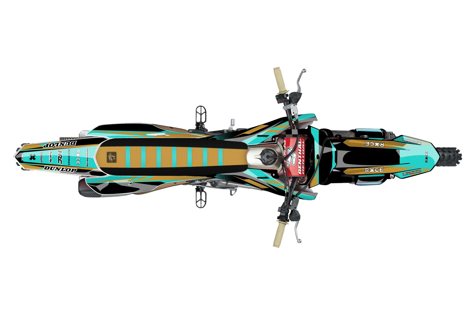 «teal brown» — готовый комплект графики серии Maverick для Honda MX Graphic Kit Honda CRF450R 2025. В комплекте: графика на бак и боковые облицовки, крылья (переднее и заднее), передний щиток, номерные таблички, защита вилки. Материал: ПВХ-винил 80 мкр с холодной ламинацией 300 мкр, общая толщина 380 мкр; покрытие глянцевое или матовое на выбор. Устойчив к UV-излучению, воде, бензину и мойке высокого давления. Клей акриловый на сольвентной основе — постоянный, для гибких пластиков. На простых поверхностях монтируется без нагрева; для сложных изгибов рекомендуем фен. Этот пресет можно заказать как есть или взять за основу в конструкторе: поменять цвета, добавить стартовый номер и свой бренд. Производство — 3–5 рабочих дней, доставка по России СДЭКом или Почтой, по СНГ — курьерскими службами.