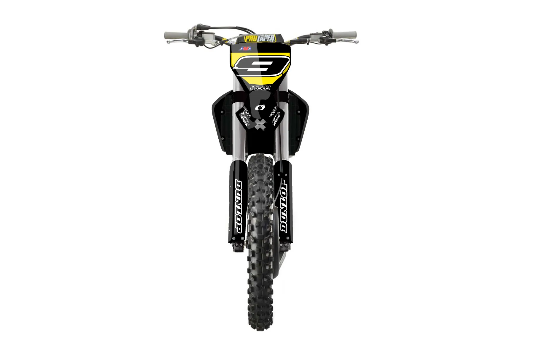 «CustomDesign» — готовый комплект графики серии Maverick для Husqvarna MX Graphic Kit Husqvarna FC250 2019. В комплекте: графика на бак и боковые облицовки, крылья (переднее и заднее), передний щиток, номерные таблички, защита вилки. Материал: ПВХ-винил 80 мкр с холодной ламинацией 300 мкр, общая толщина 380 мкр; покрытие глянцевое или матовое на выбор. Устойчив к UV-излучению, воде, бензину и мойке высокого давления. Клей акриловый на сольвентной основе — постоянный, для гибких пластиков. На простых поверхностях монтируется без нагрева; для сложных изгибов рекомендуем фен. Этот пресет можно заказать как есть или взять за основу в конструкторе: поменять цвета, добавить стартовый номер и свой бренд. Производство — 3–5 рабочих дней, доставка по России СДЭКом или Почтой, по СНГ — курьерскими службами.